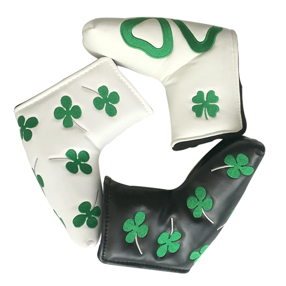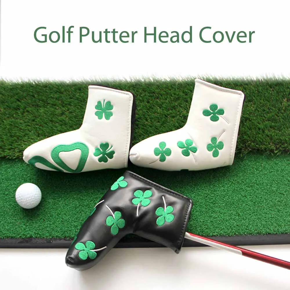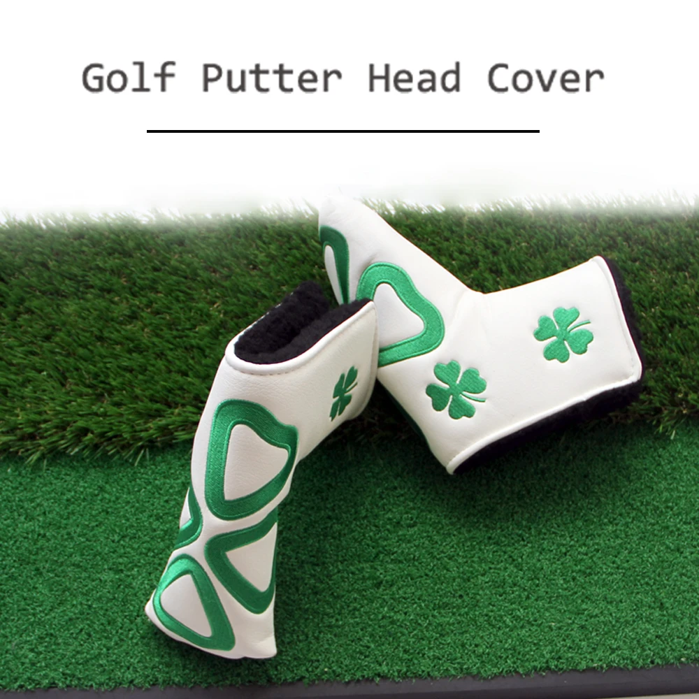 Golf Blade Putter Head cover Head Cover for Golf Clubs,Lucky Clover Putter Head Cover for Golf Clubs Men,White PutterCover Blade
