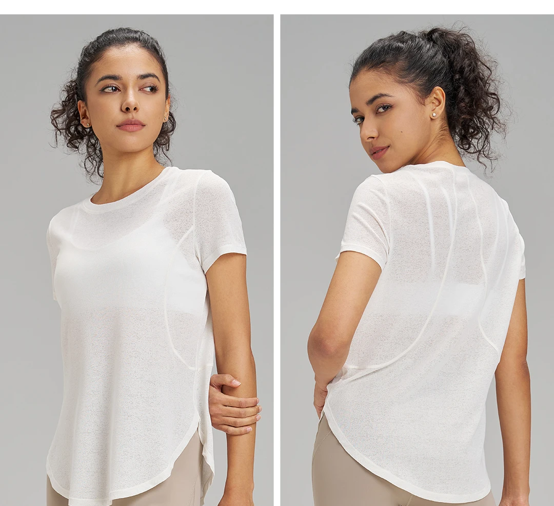 SPECIFICATIONSBlocking: RegularBrand Name: NAQIYAYABEICN: ZhejiangChoice: yesCraft of Weaving: KnitDepartment Name: WomenFabric Type: KnittedFeature: Breathable,Quick DryFit: Fits true to size, take your normal sizeGender: WomenHign-concerned Chemical: NoneItem Type: SHIRTSMaterial: POLYESTEROrigin: Mainland ChinaSleeve Length(cm): short(4-16inch)Sport Type: Yogapocket description: No Pocketsize_info: {"sizeInfoList":[{"length":{"cm":"96","inch":"37.80"},"size":"S","vid":-1},{"length":{"cm":"102","inch":"40.16"},"size":"M","vid":-2},{"length":{"cm":"108","inch":"42.52"},"size":"L","vid":-3}]}Bust and hem measurements are full circumference, not radius.