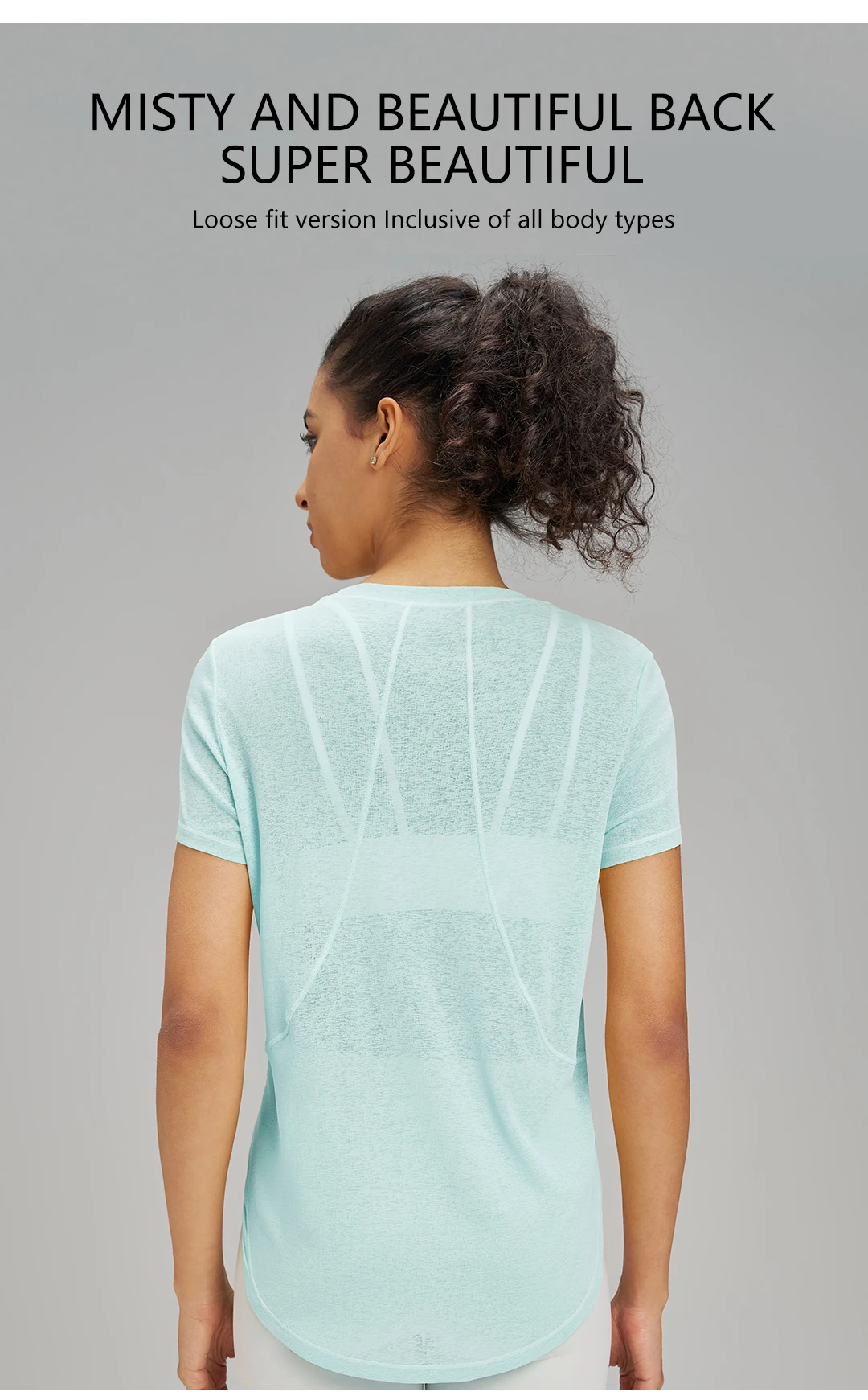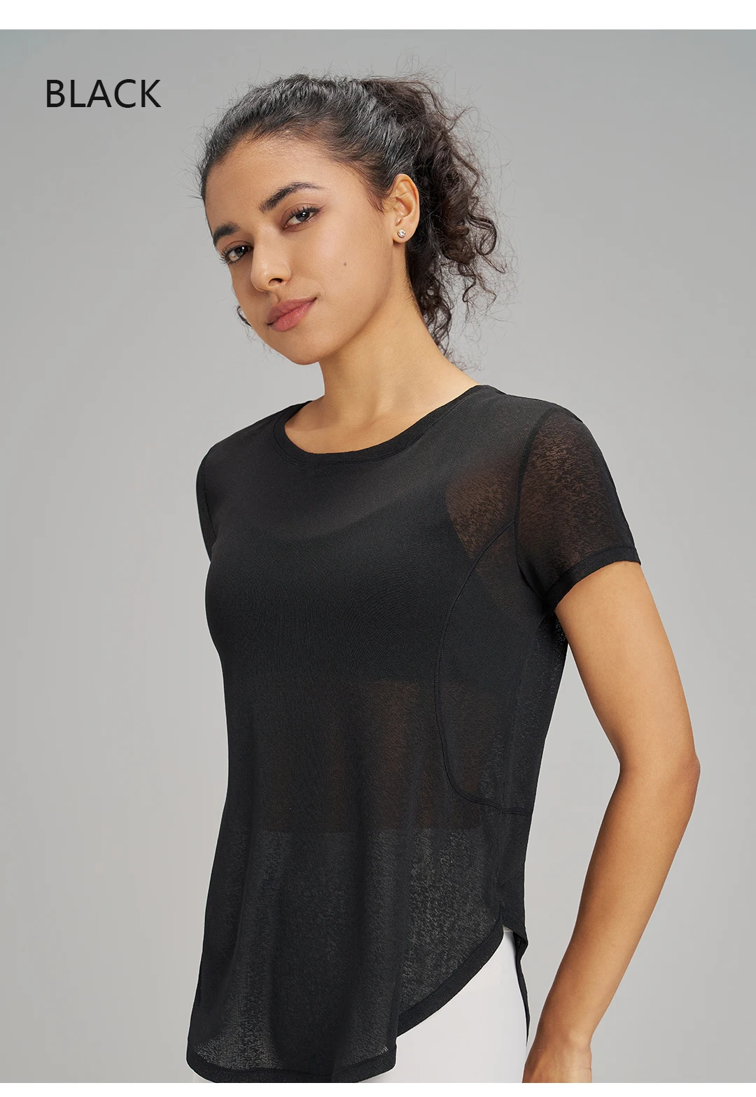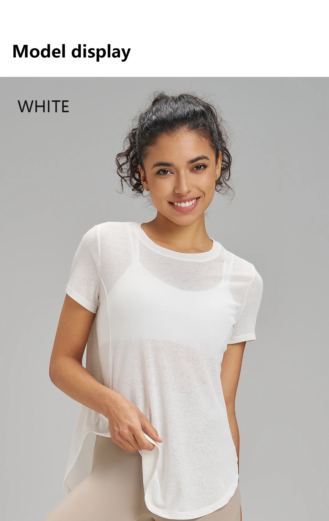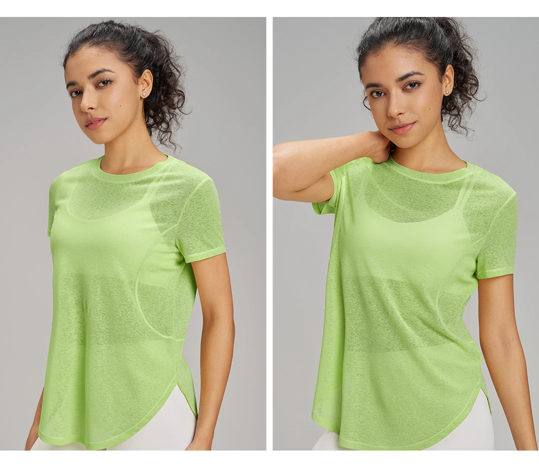 Hollow loose yoga hoodie fitness leisure sports short sleeve mesh breathable lightweight yoga clothing women