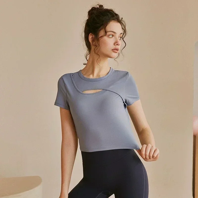 Yoga clothing women summer fashion short-sleeved sports T-shirt tops tight fitness clothing