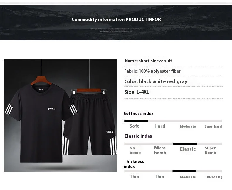 SPECIFICATIONSBrand Name: NoEnName_NullCN: GuangdongChoice: yesClosure Type: Elastic WaistCollar: O-NeckCraft of Weaving: KnitGender: MenHign-concerned Chemical: NoneItem Type: PAJAMASMaterial: POLYESTERModel Number: Y4343Obscene Picture: NoOrigin: Mainland ChinaPattern Type: SolidSexually Suggestive: NoSleeve Length(cm): HalfSleeve Style: RegularStyle: SportyThickness: thinname: Casual wear,Sportswear,Summer,Spring and autumn clothes,Gym clothes,Gym wear,Basketball uniforms,lax,Plus size,Quick-drying clothes,Men,Men's T-shirts,Men's shorts,Men's pajamas,Men's pajama pants,Men's loungewear,Teen...