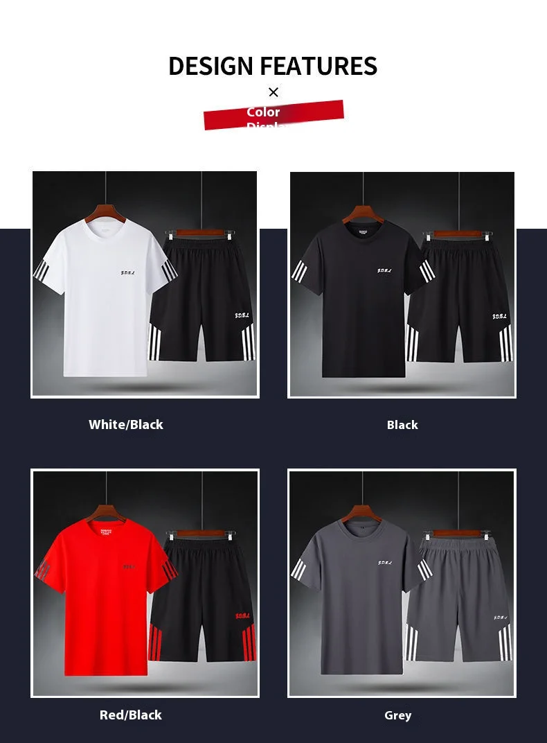 New Men's Summer Sportswear Fitness Clothing Short-Sleeved T-Shirt Loose Quick-Drying Clothes Basketball Uniform Running Shorts