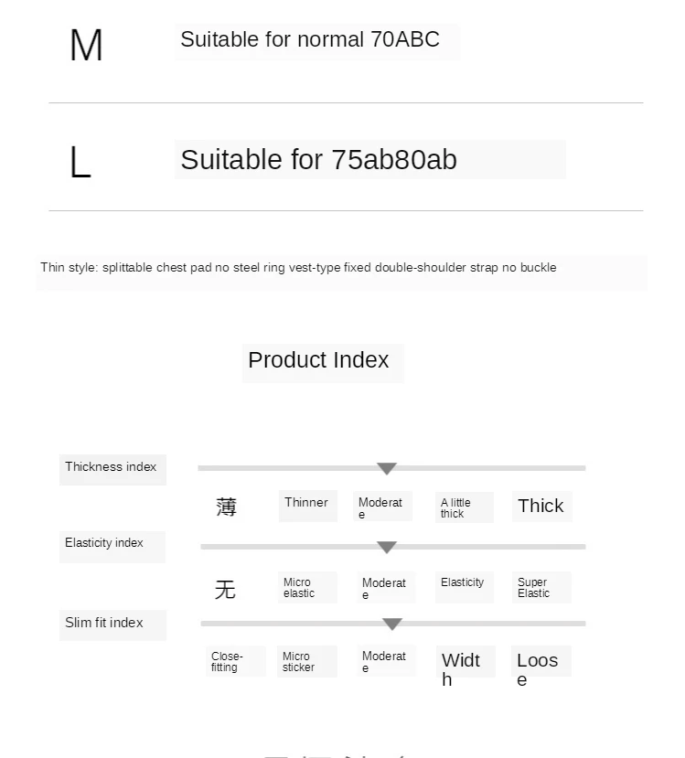 Suit for bust under 115cm , cup A,B; Weight 40-50kg