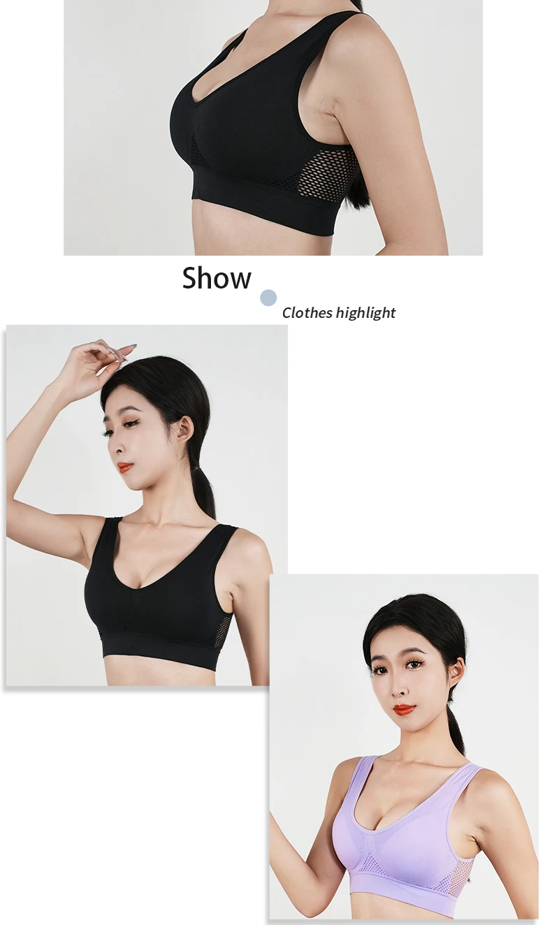 Sexy Womens Sport Bra Shockproof Running Padded Mesh Wireless Vest Top Solid Breathable Girl Yoga Push Up Training Bra Underwear
