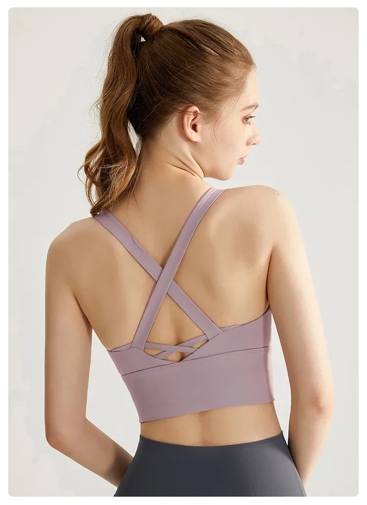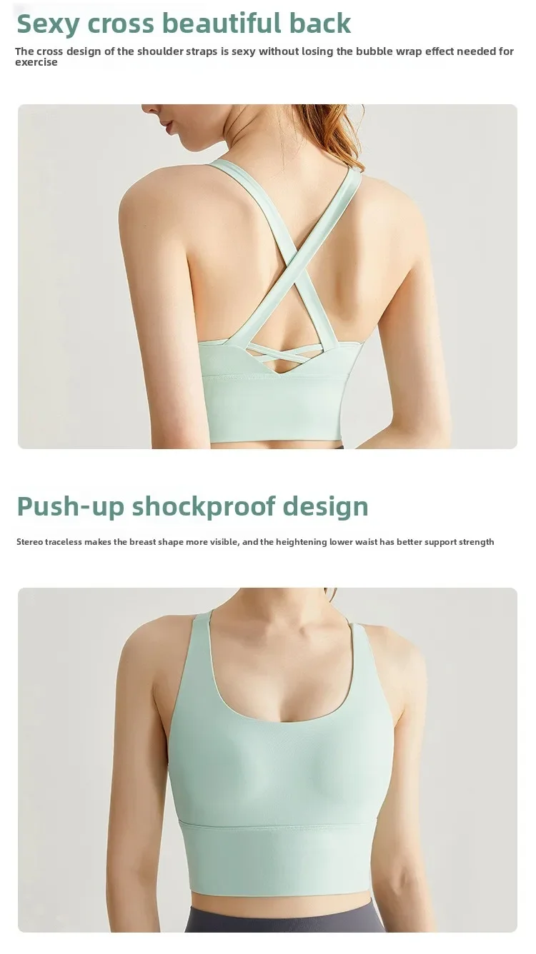 Sports Bra Women Summer Shock-absorbing Gathering Double Breast Strap Yoga Vest Quick Drying Anti Sagging Shaping Fitness Bra