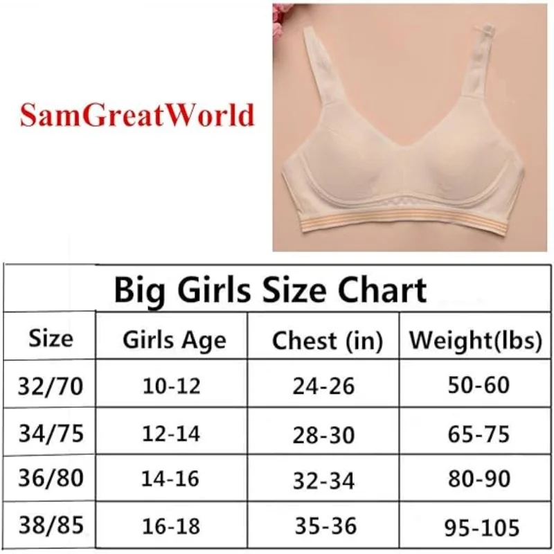 【True to Size】-- ✿Great as sports bras and starter bras for the young teenager! Or Everyday Bras for small petite women. Available Sizes are 32 Bra, 34 Bra, 36 Bra, and 38 Bras. Bras for girls 10-12, 12-14, 14-16, 16-18.