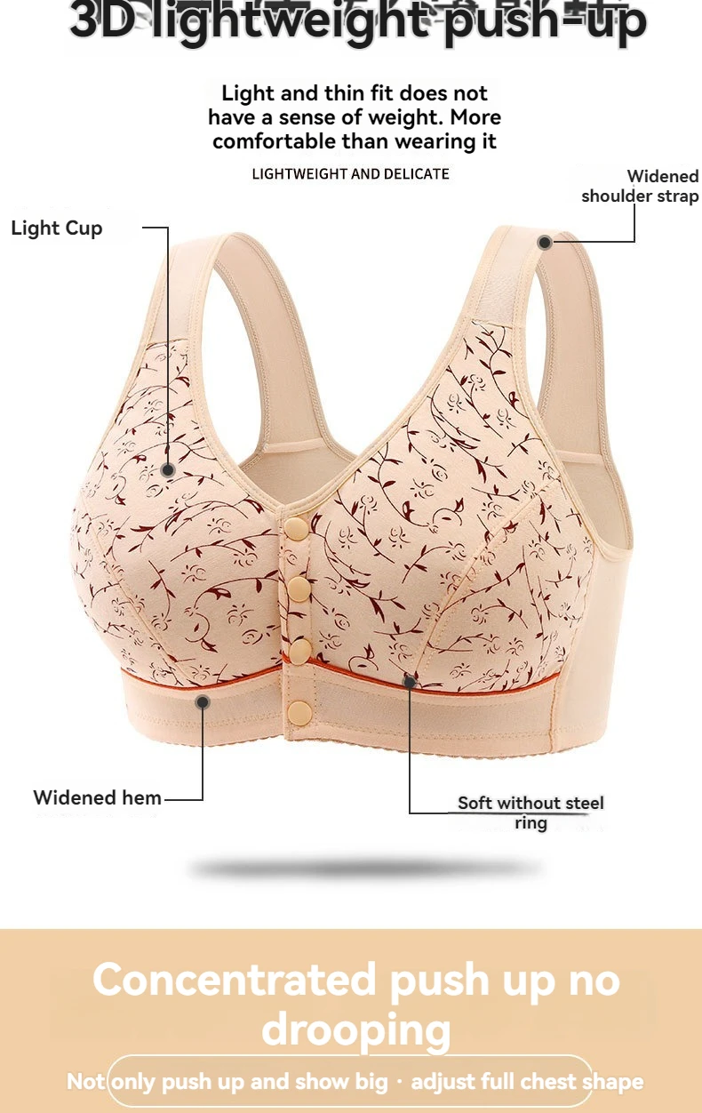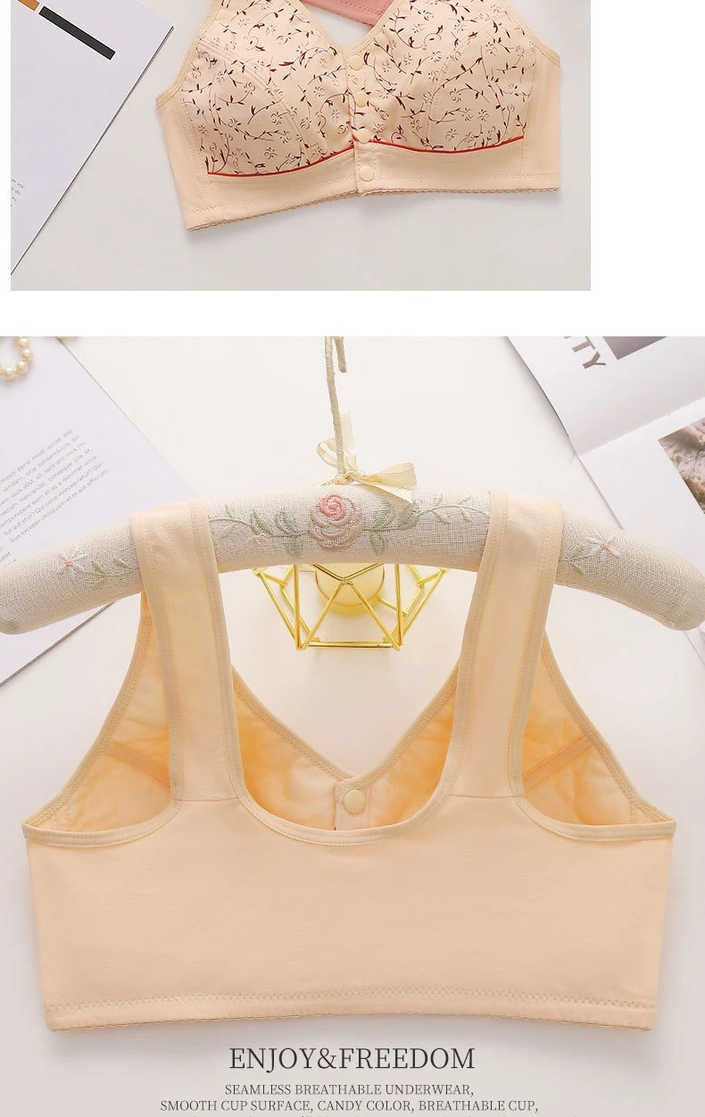 Women's Front-opening Comfortable Sports Underwear Thin Cotton Printed Non-wired Bra With Vest Style Breathable Function