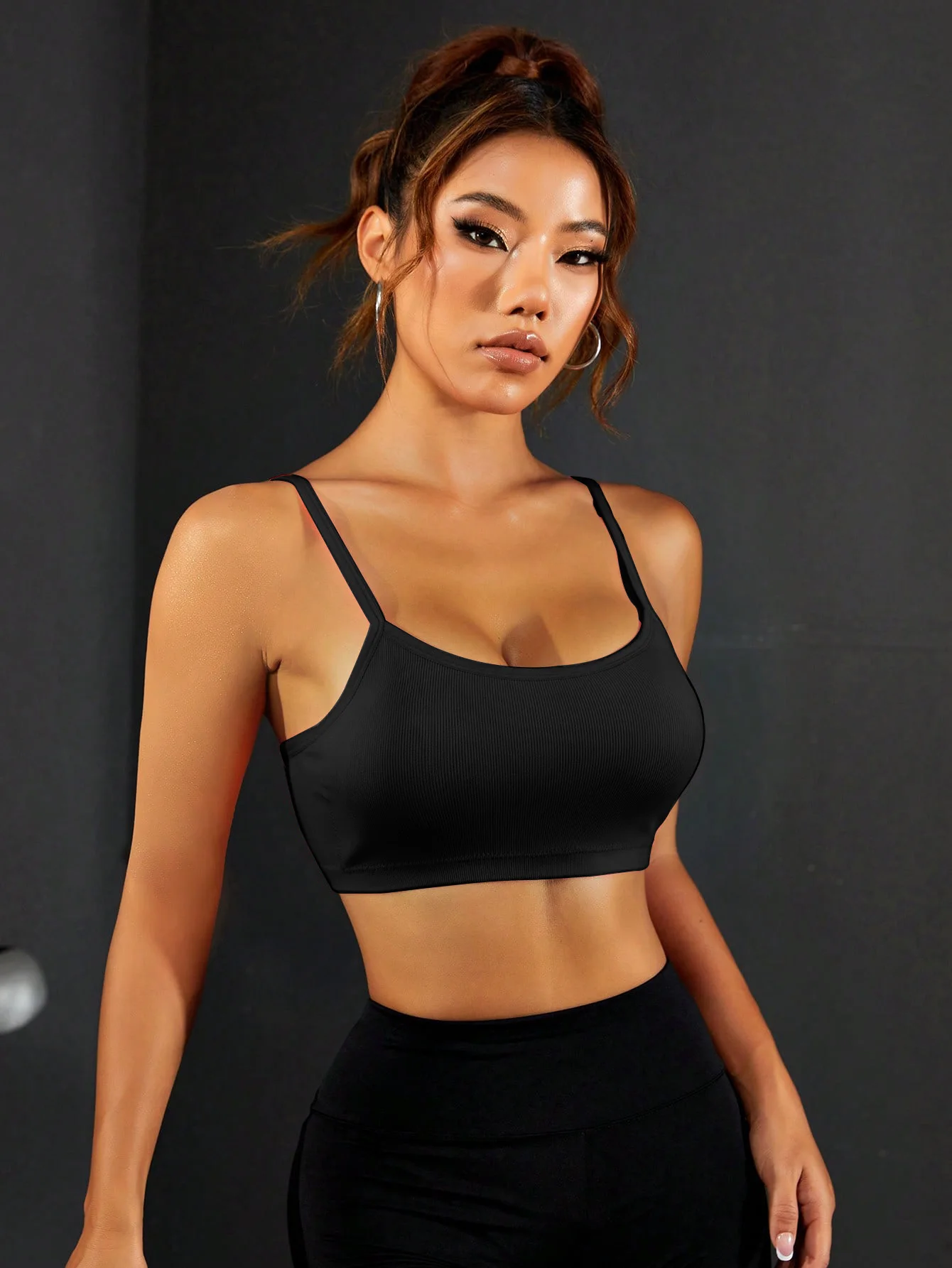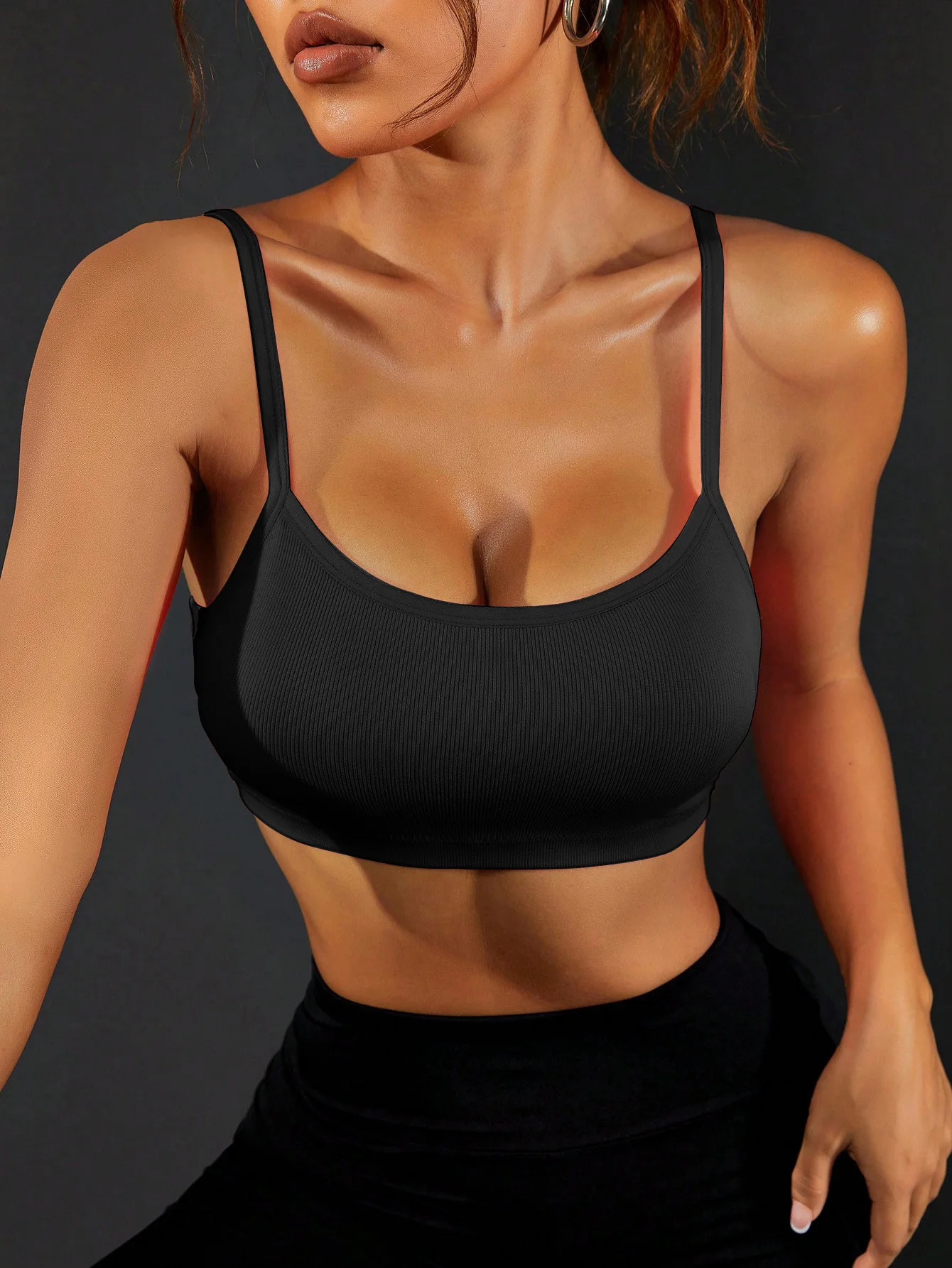 Workout Sports Bras for Women Padded Strappy Open Back Gym Bra Light Impact Yoga Crop Top