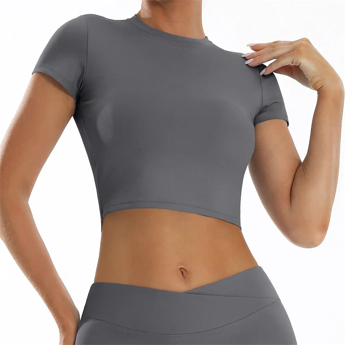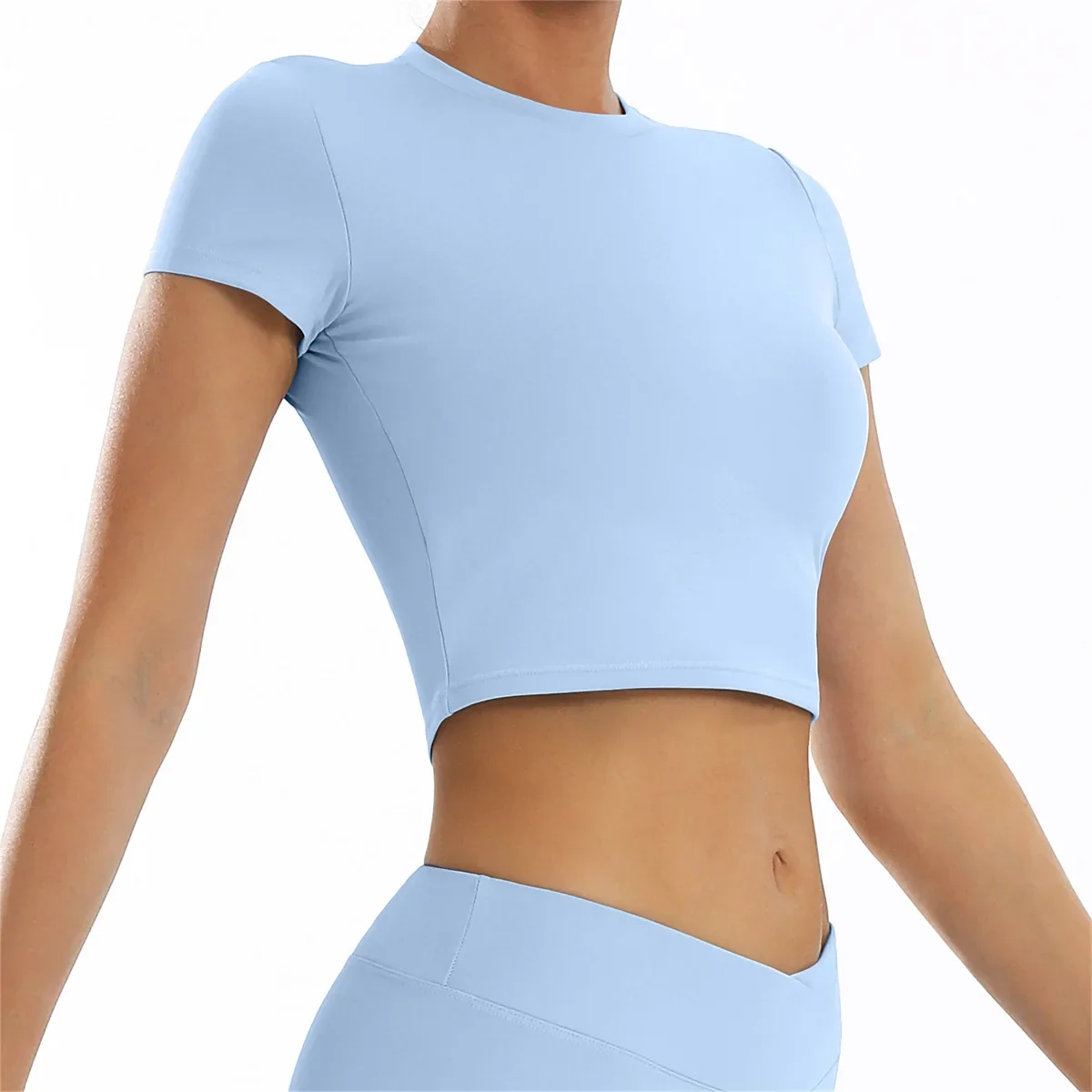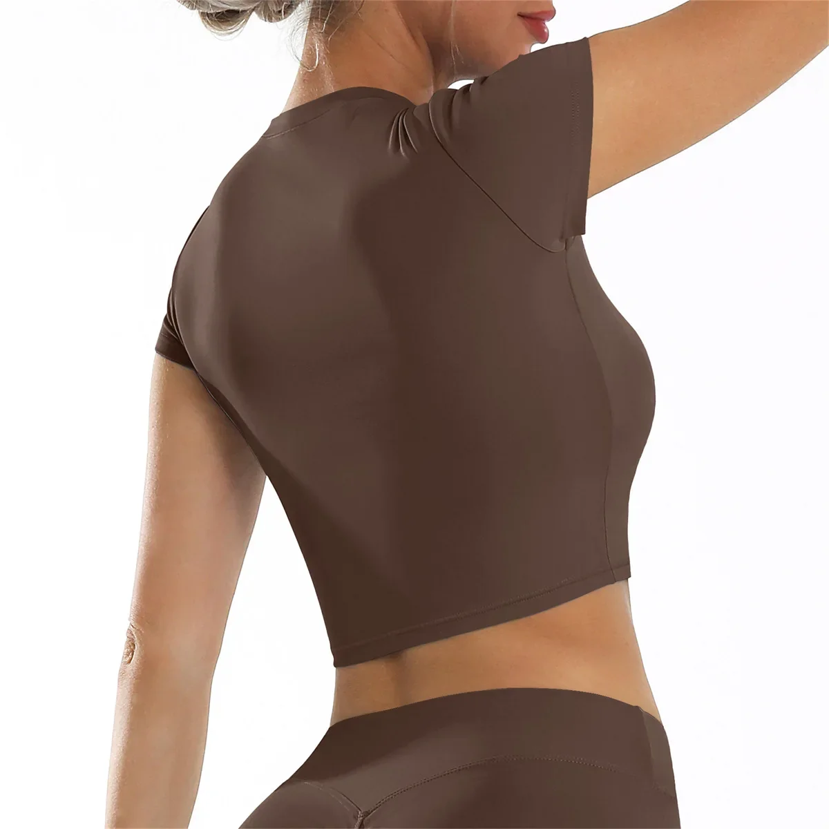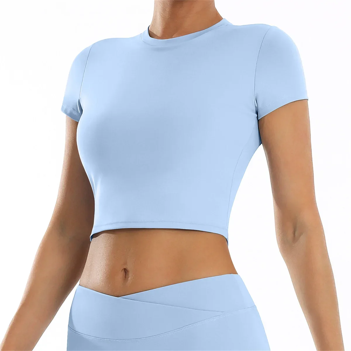 2025 new casual versatile tight fitting quick drying fitness top yoga clothes running Pilates sports T-shirt short sleeved