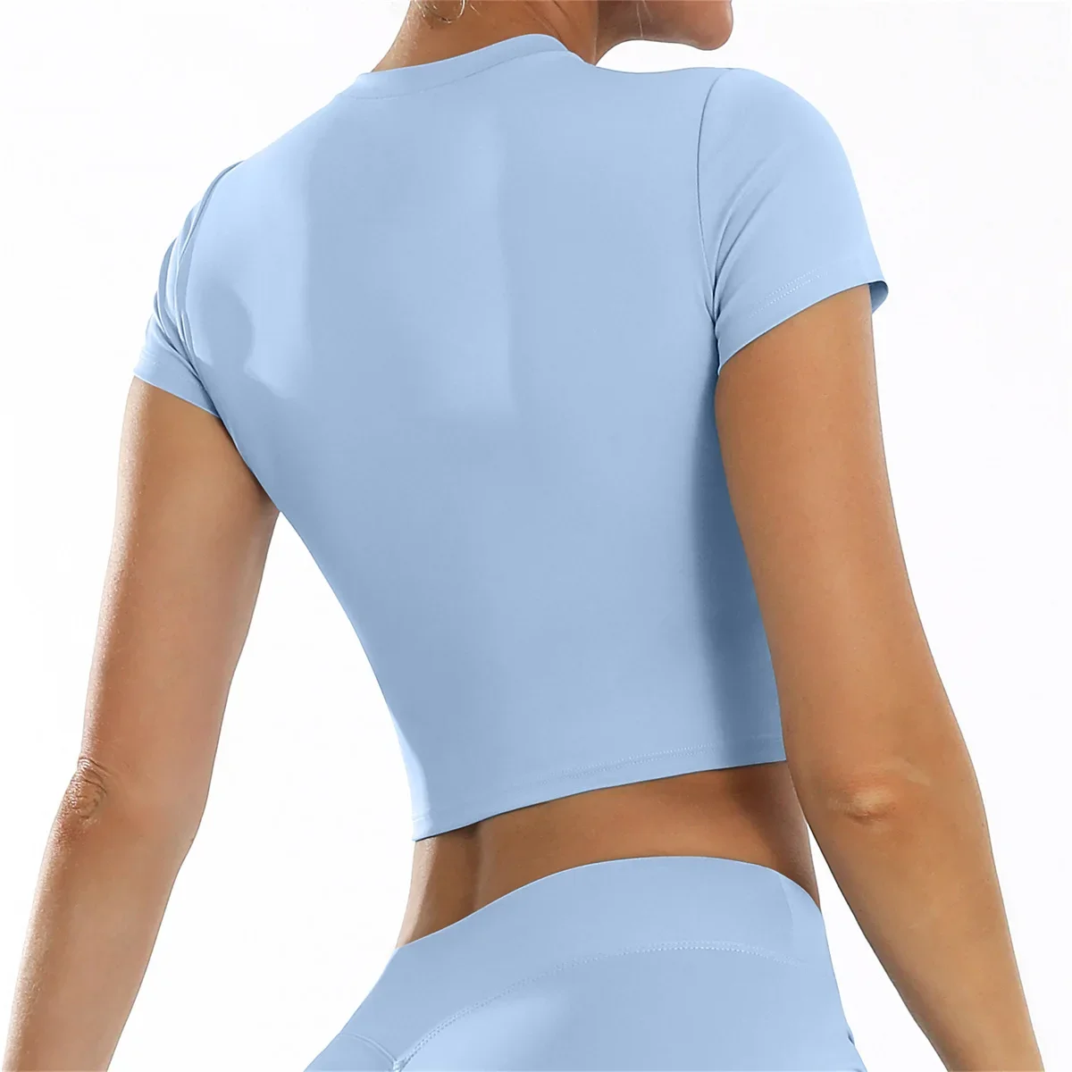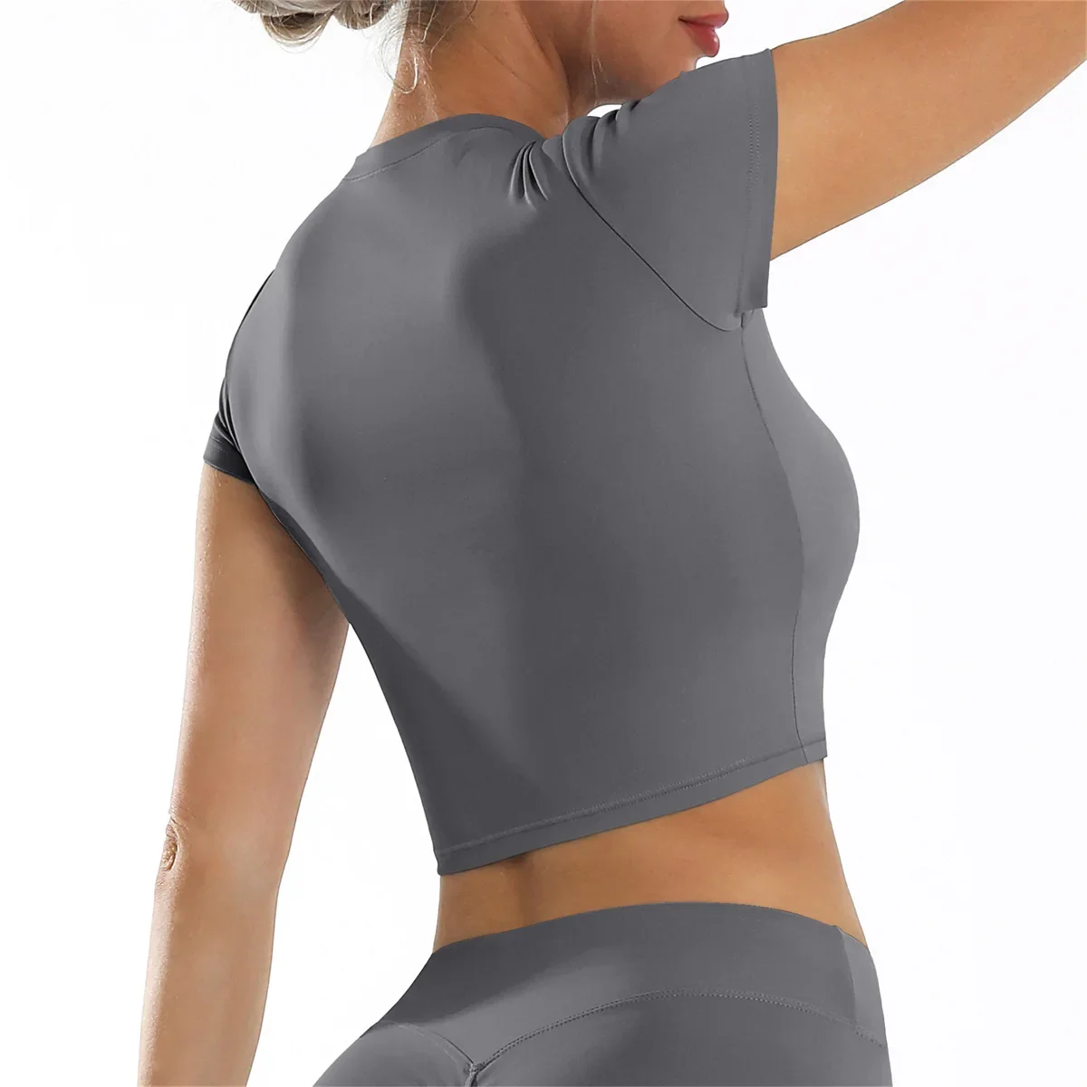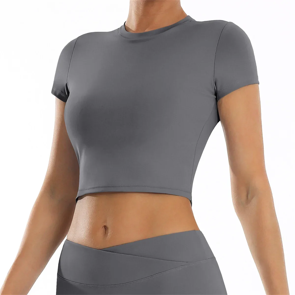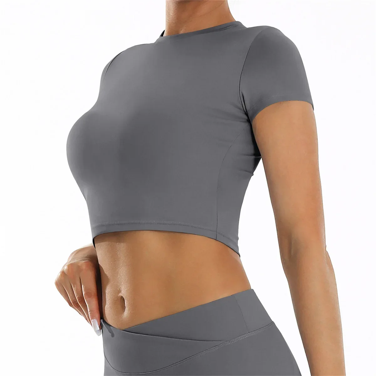 2025 new casual versatile tight fitting quick drying fitness top yoga clothes running Pilates sports T-shirt short sleeved