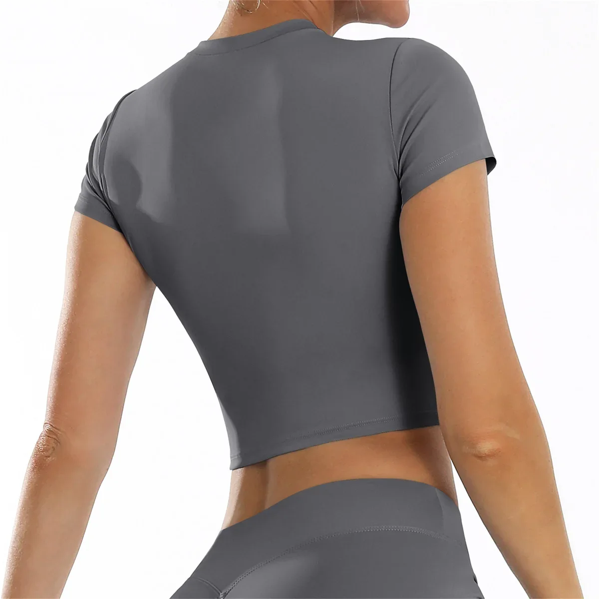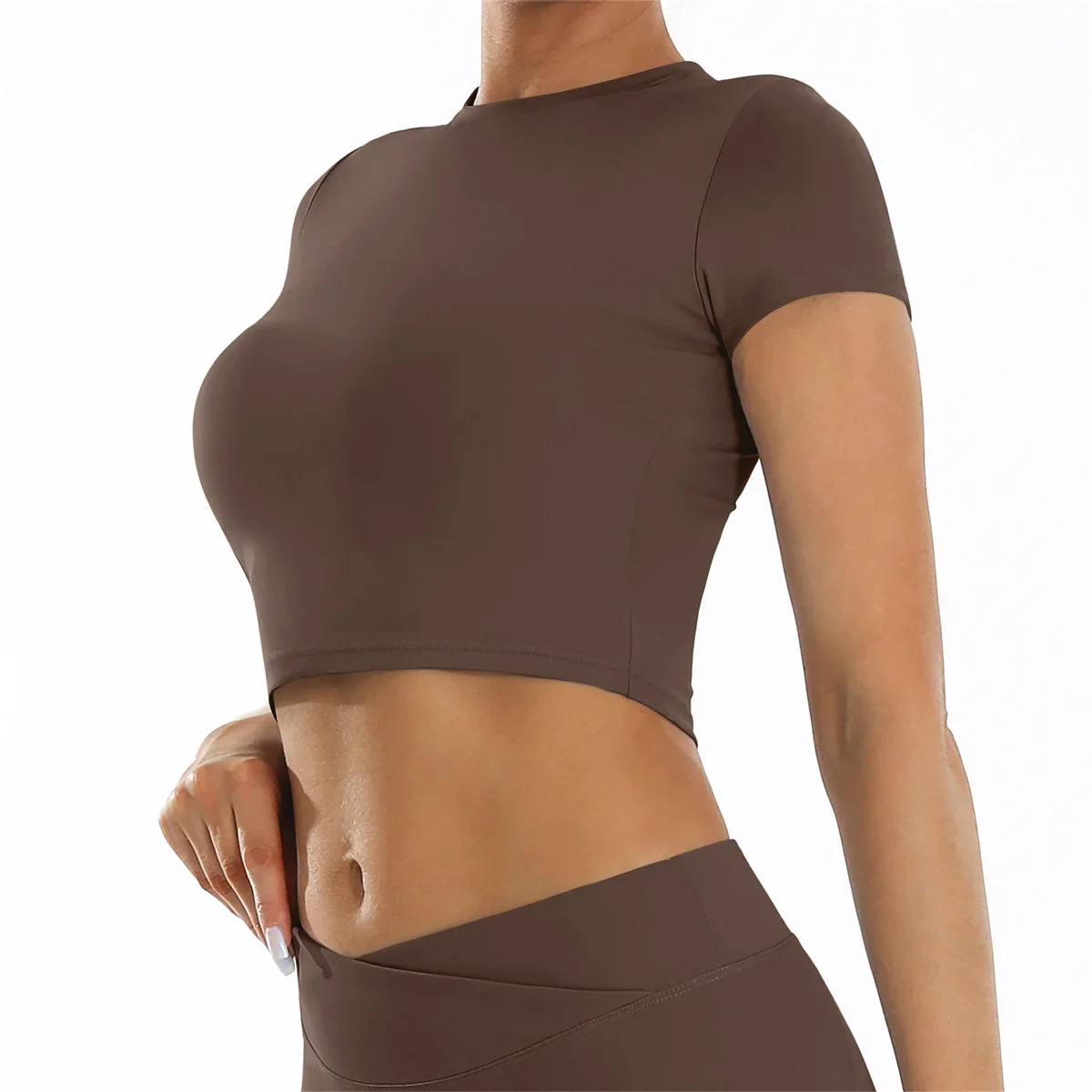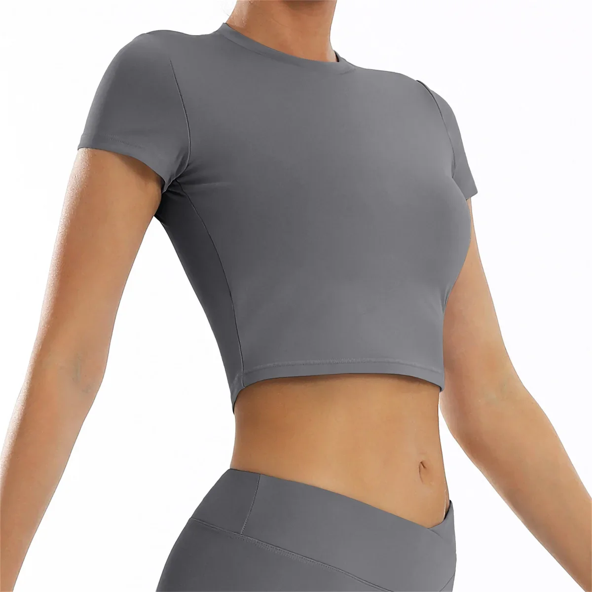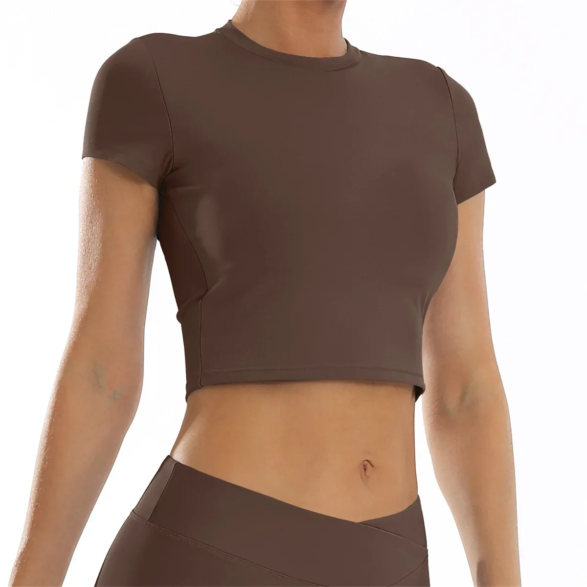2025 new casual versatile tight fitting quick drying fitness top yoga clothes running Pilates sports T-shirt short sleeved
