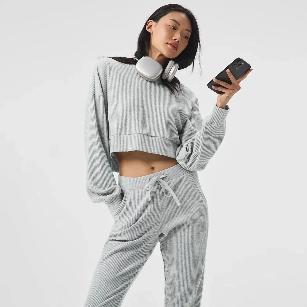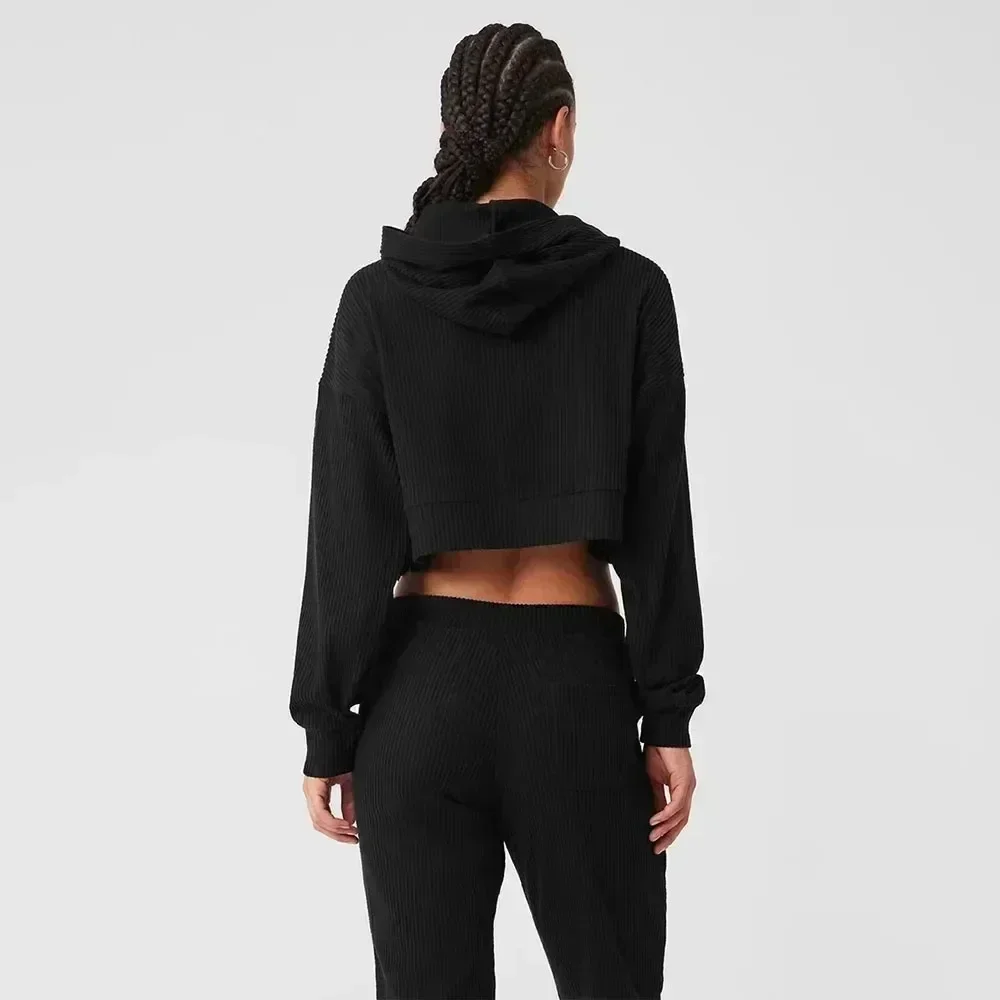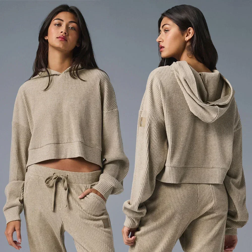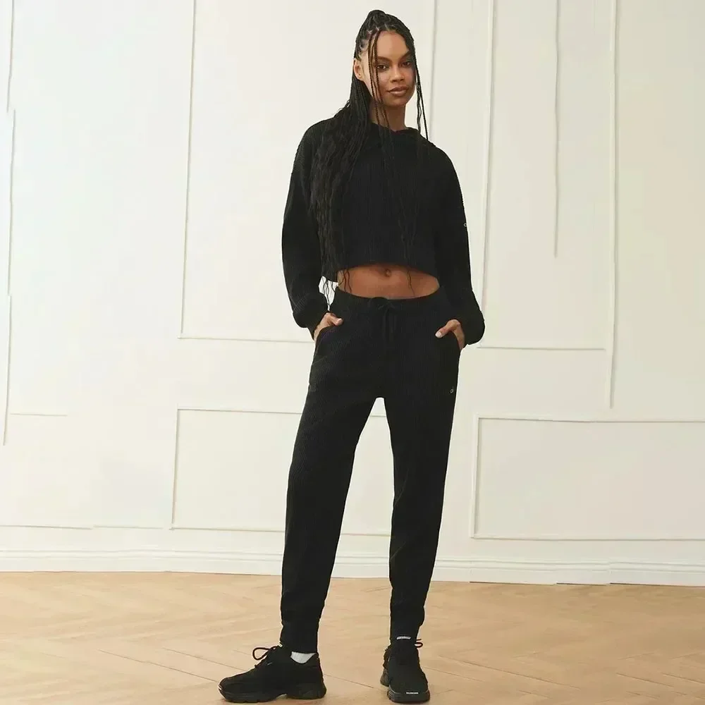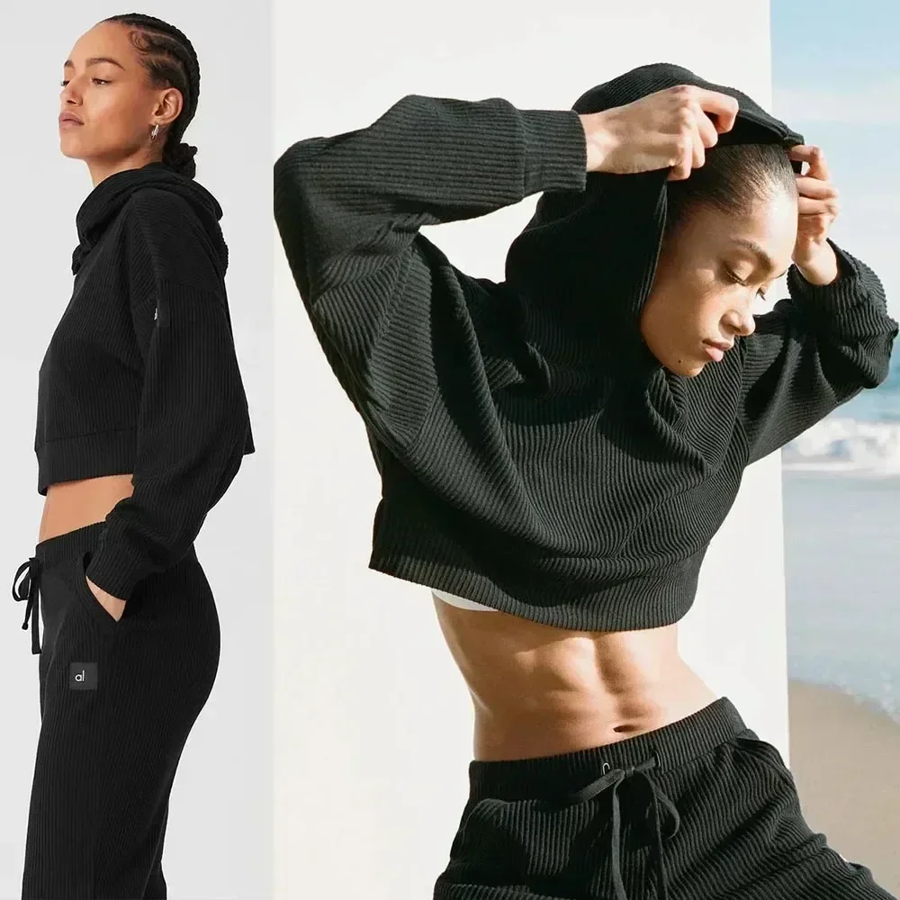 AL Yoga Set Muse Hoodie Jogger Style Loose Comfortable Short Hooded Sweatshirt Women's Sweatpant Threaded Split Fitness Set