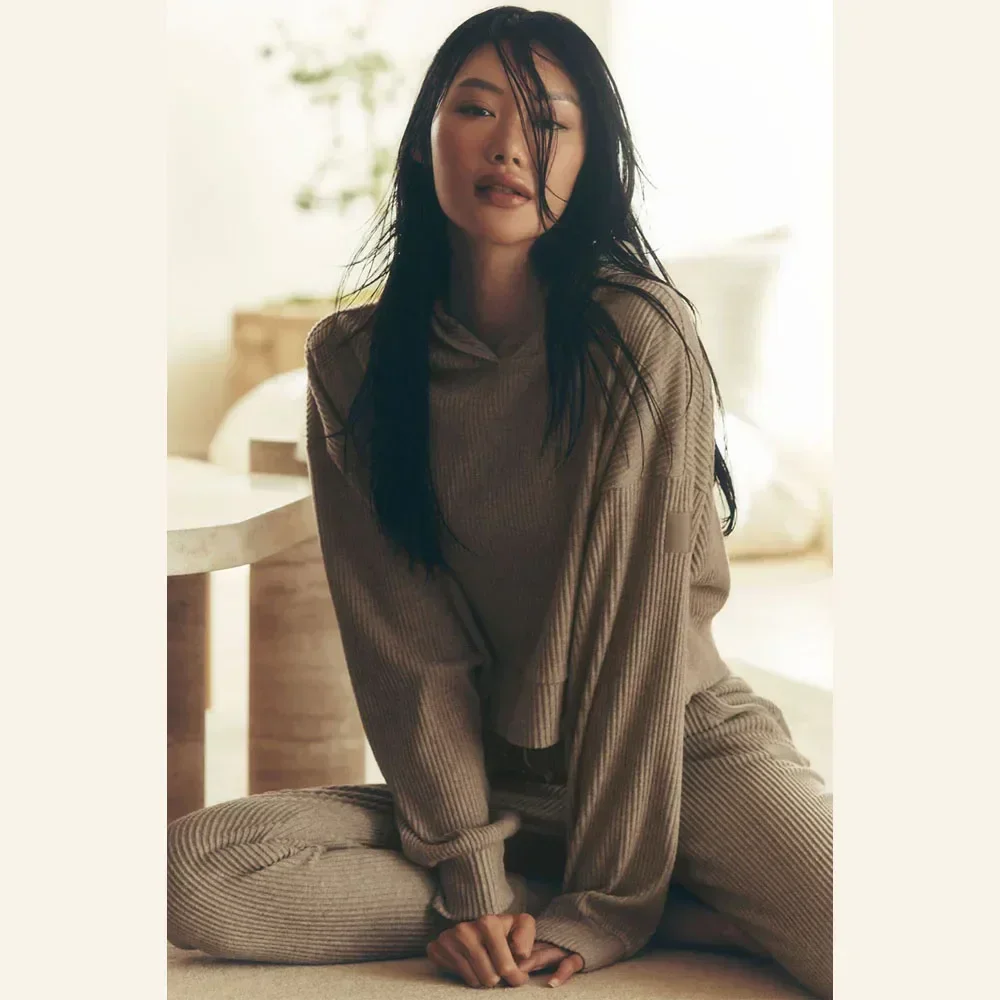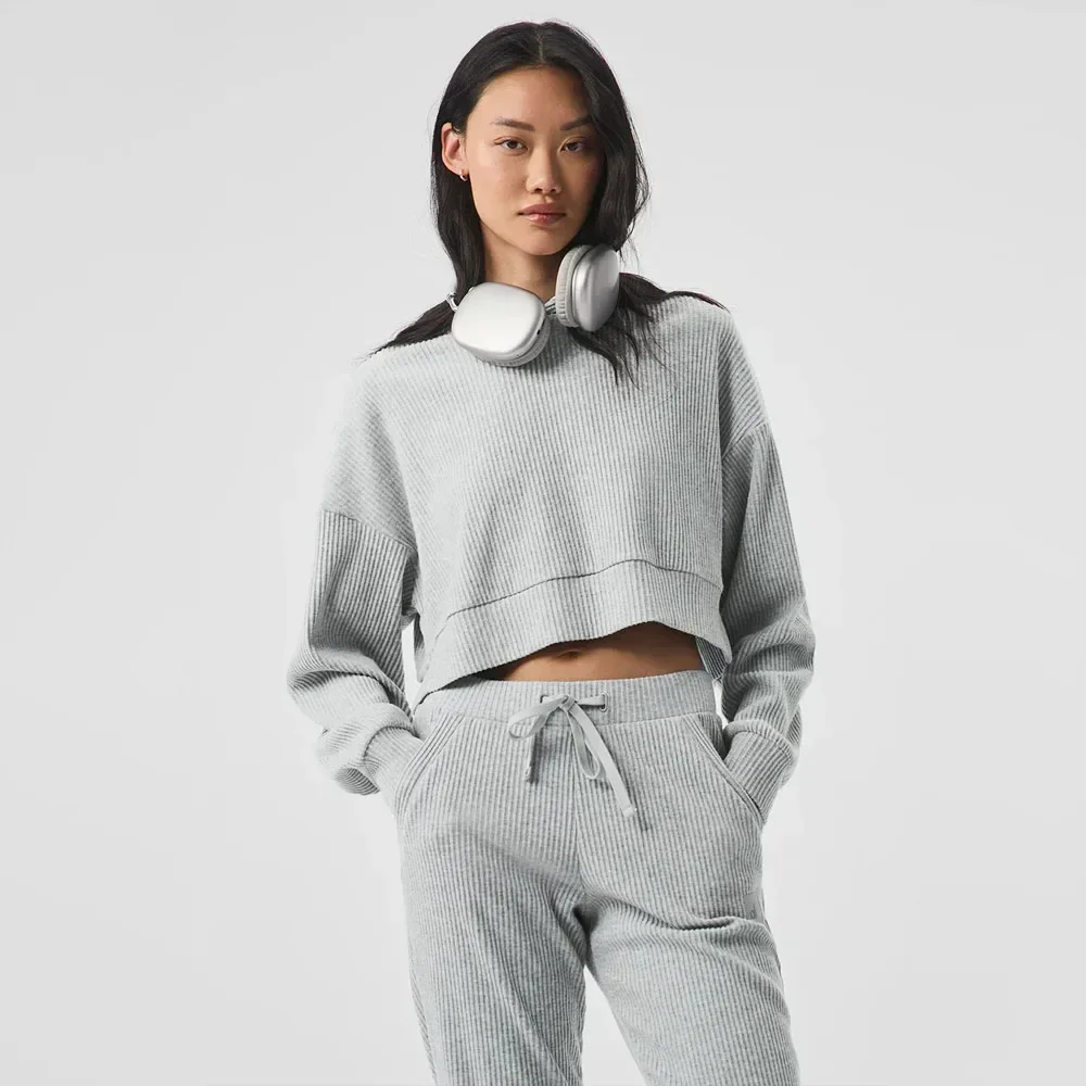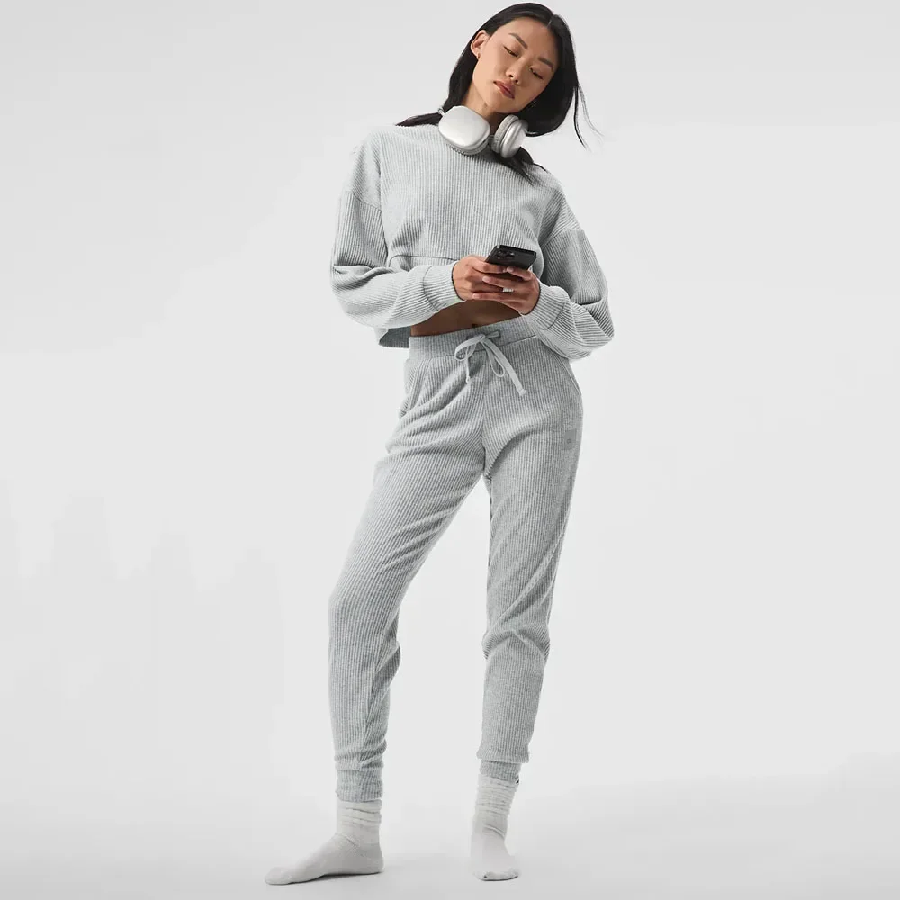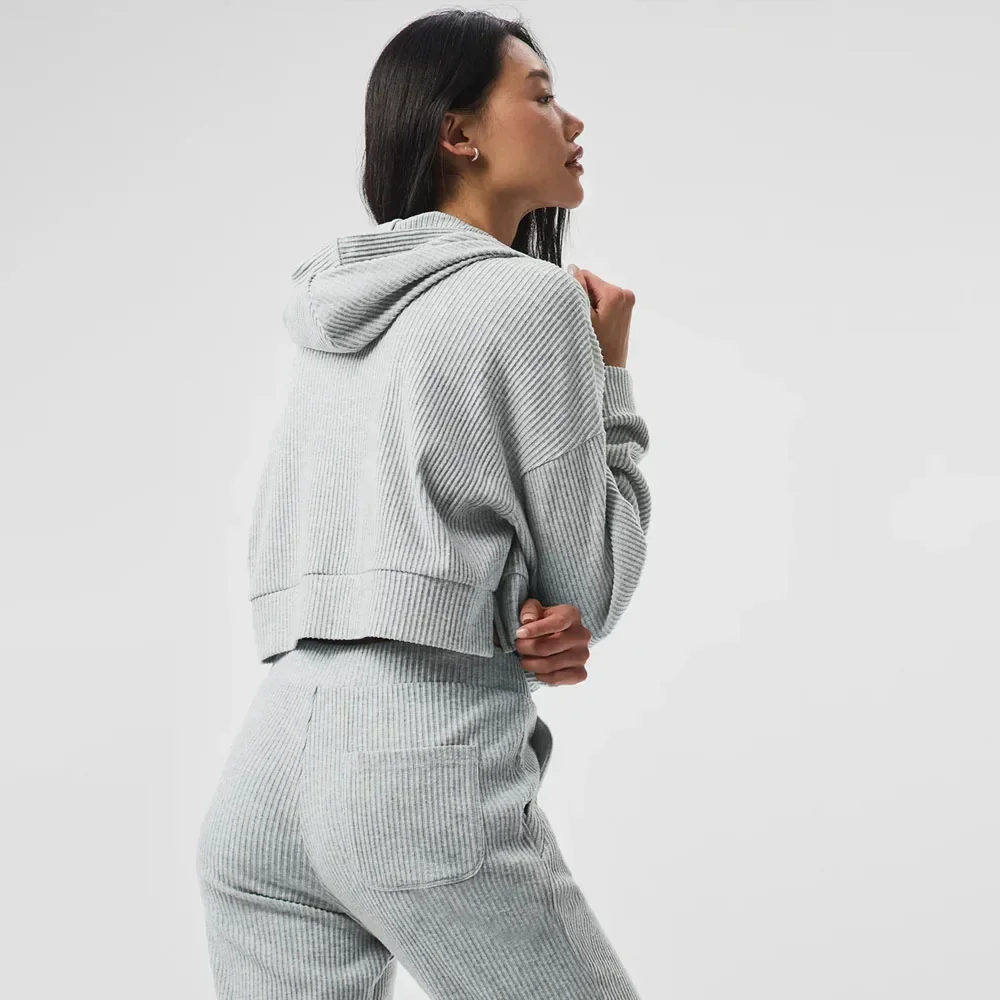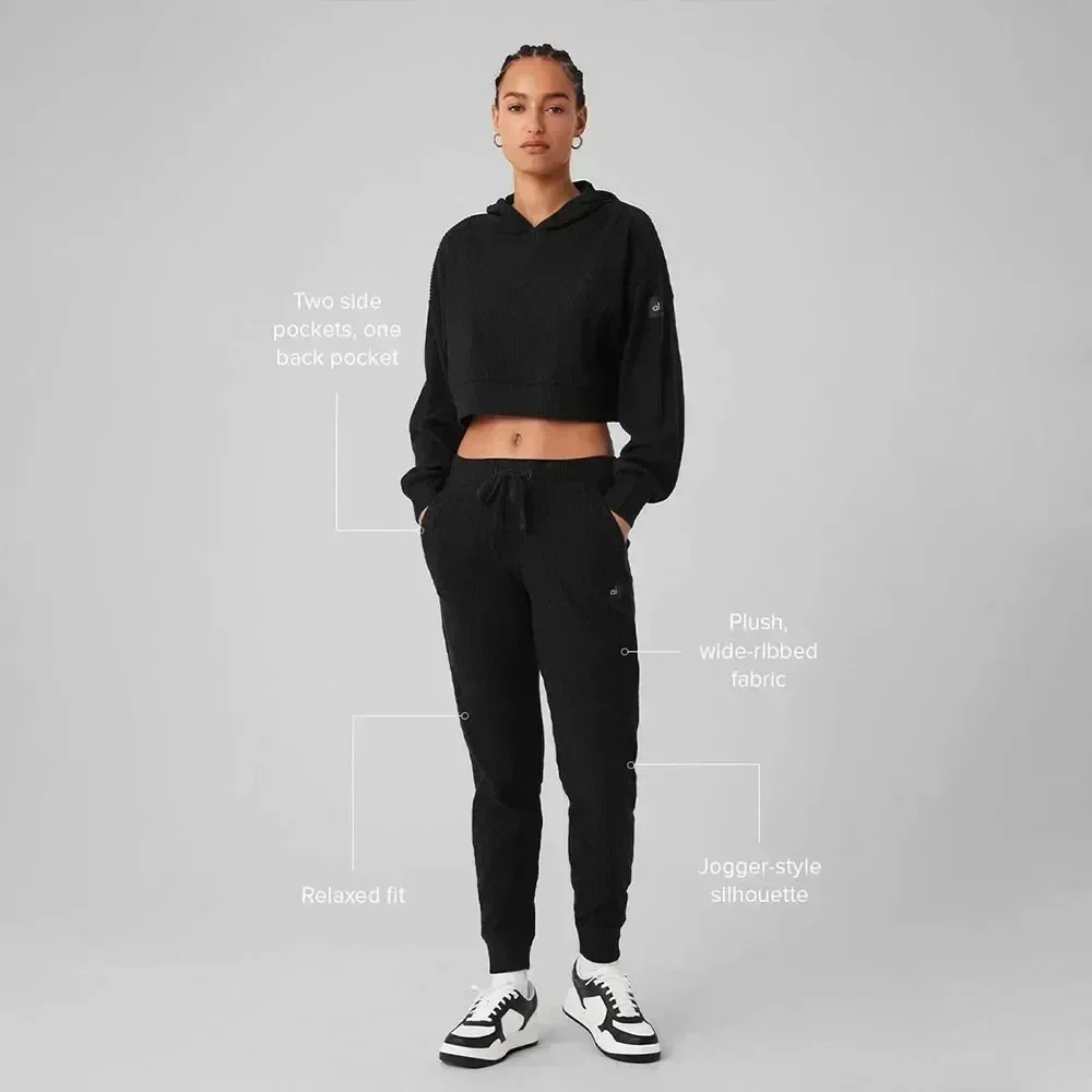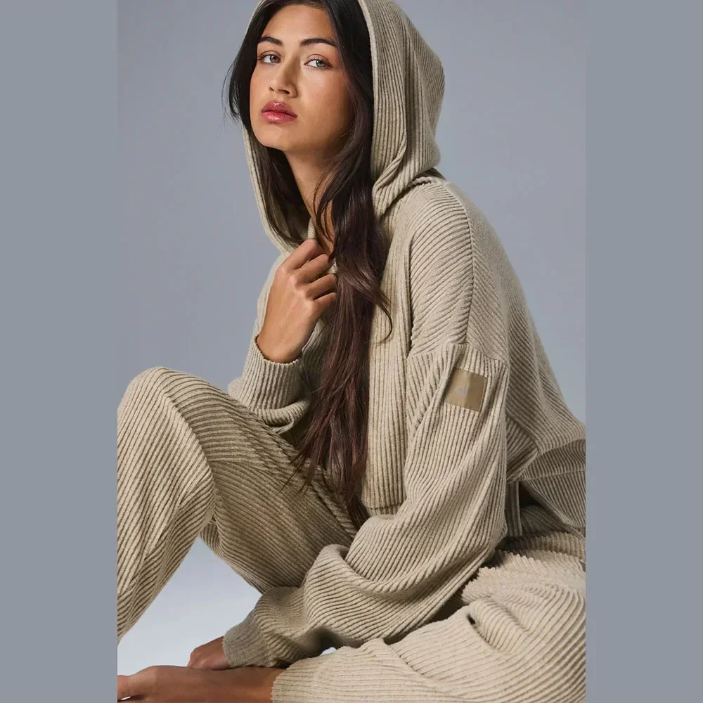 AL Yoga Set Muse Hoodie Jogger Style Loose Comfortable Short Hooded Sweatshirt Women's Sweatpant Threaded Split Fitness Set