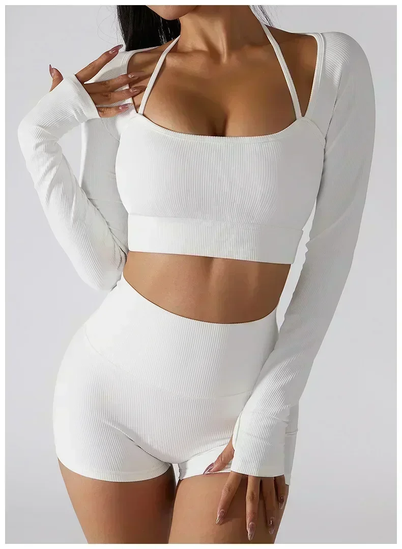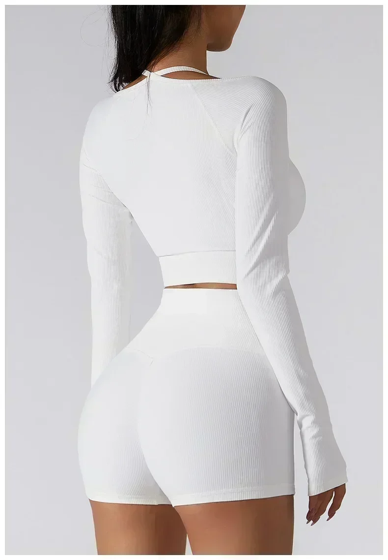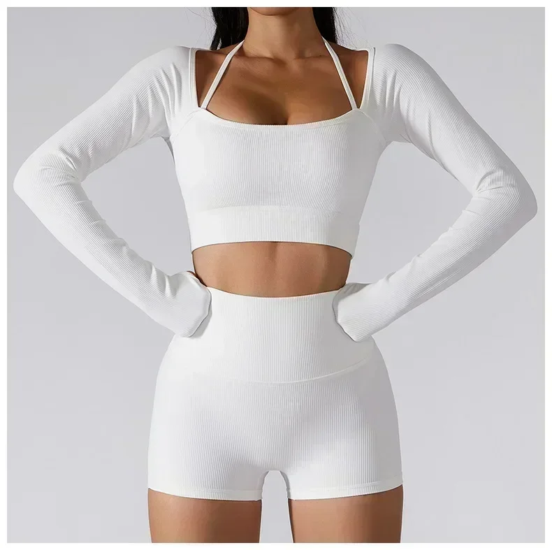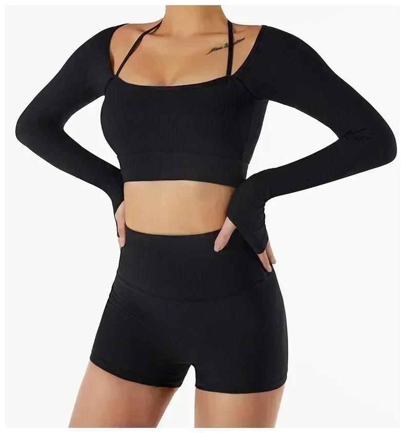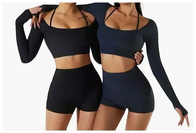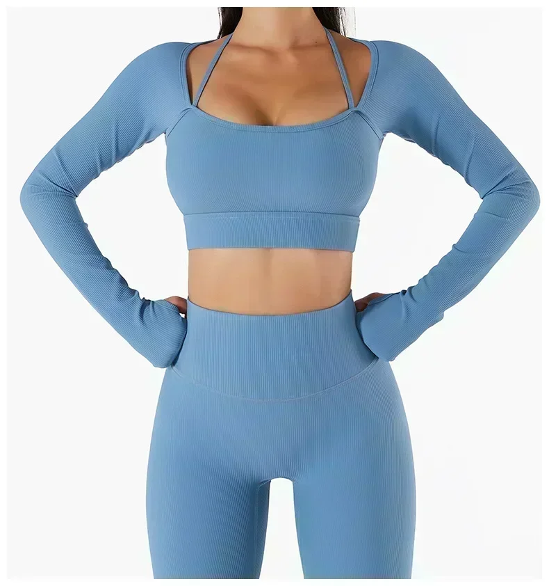 Europe and the United States threaded yoga clothing long-sleeved sports yoga vest one-piece yoga trousers female fitness
