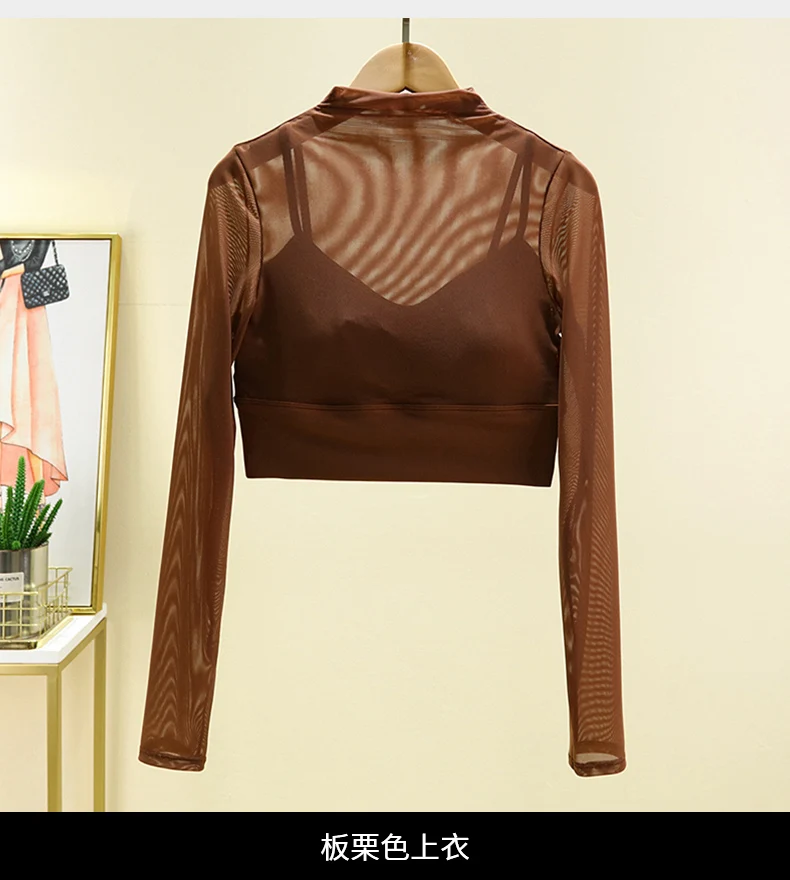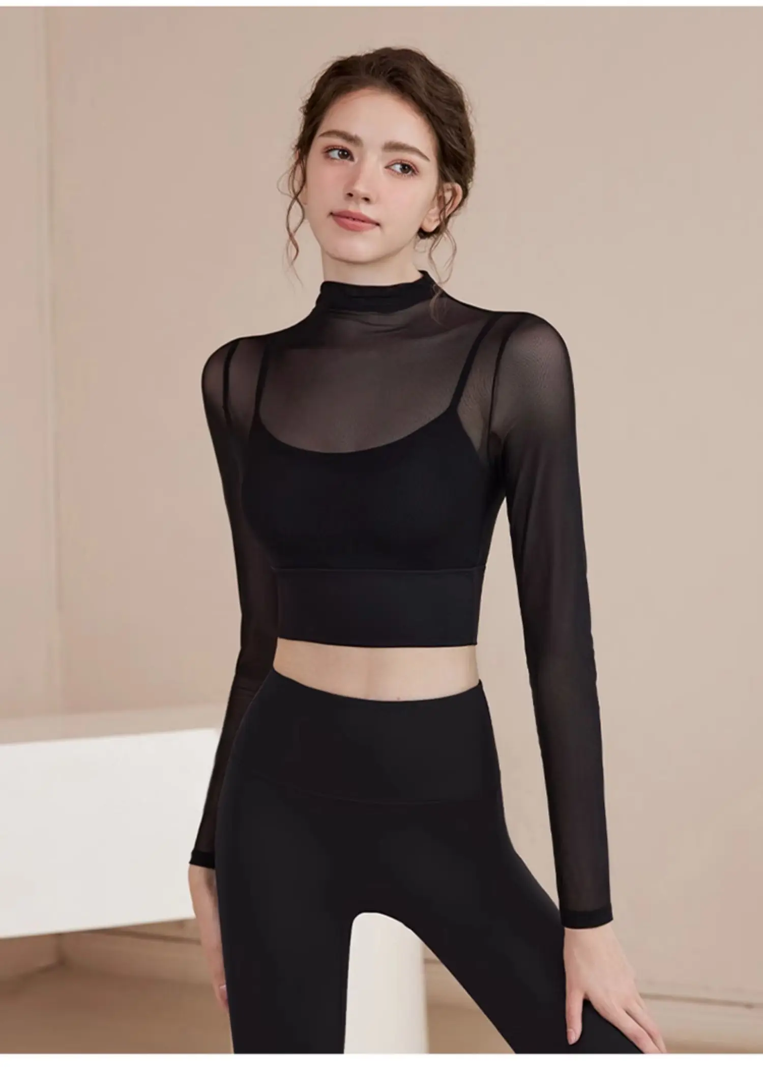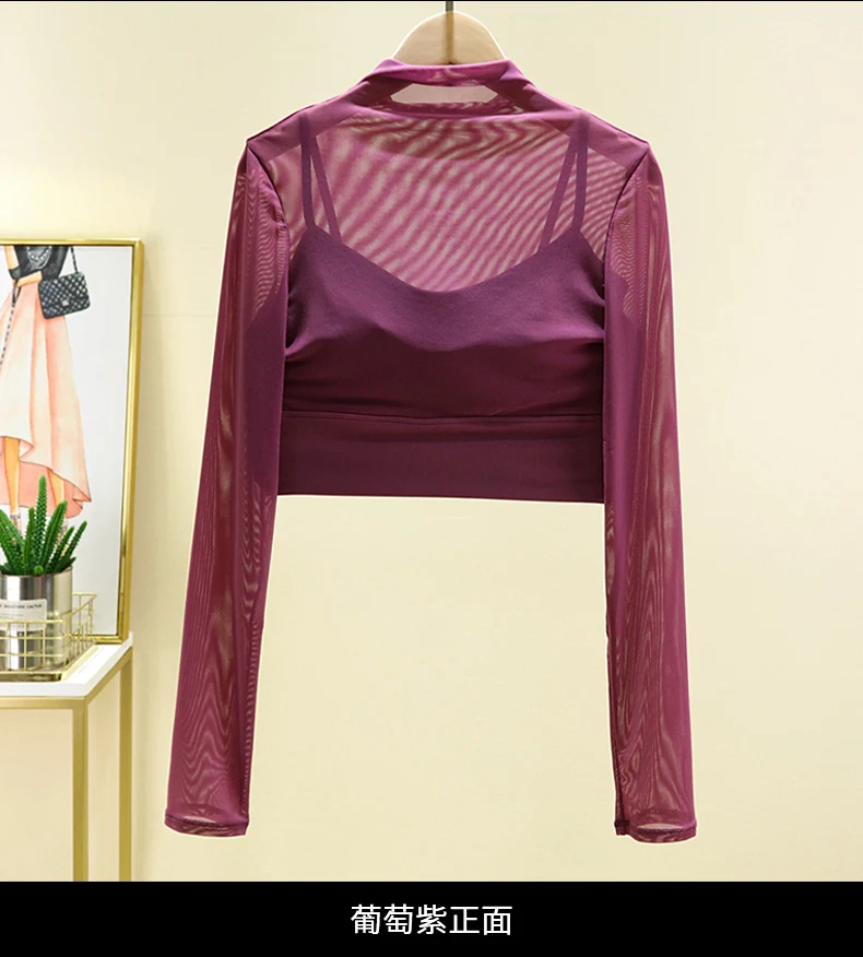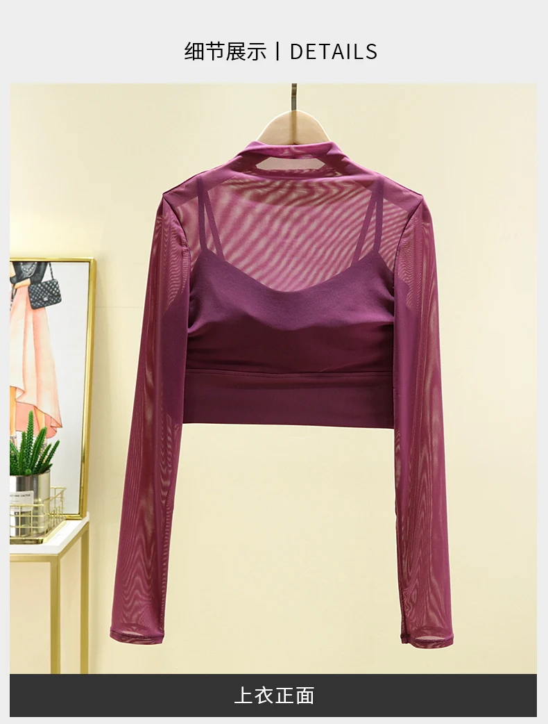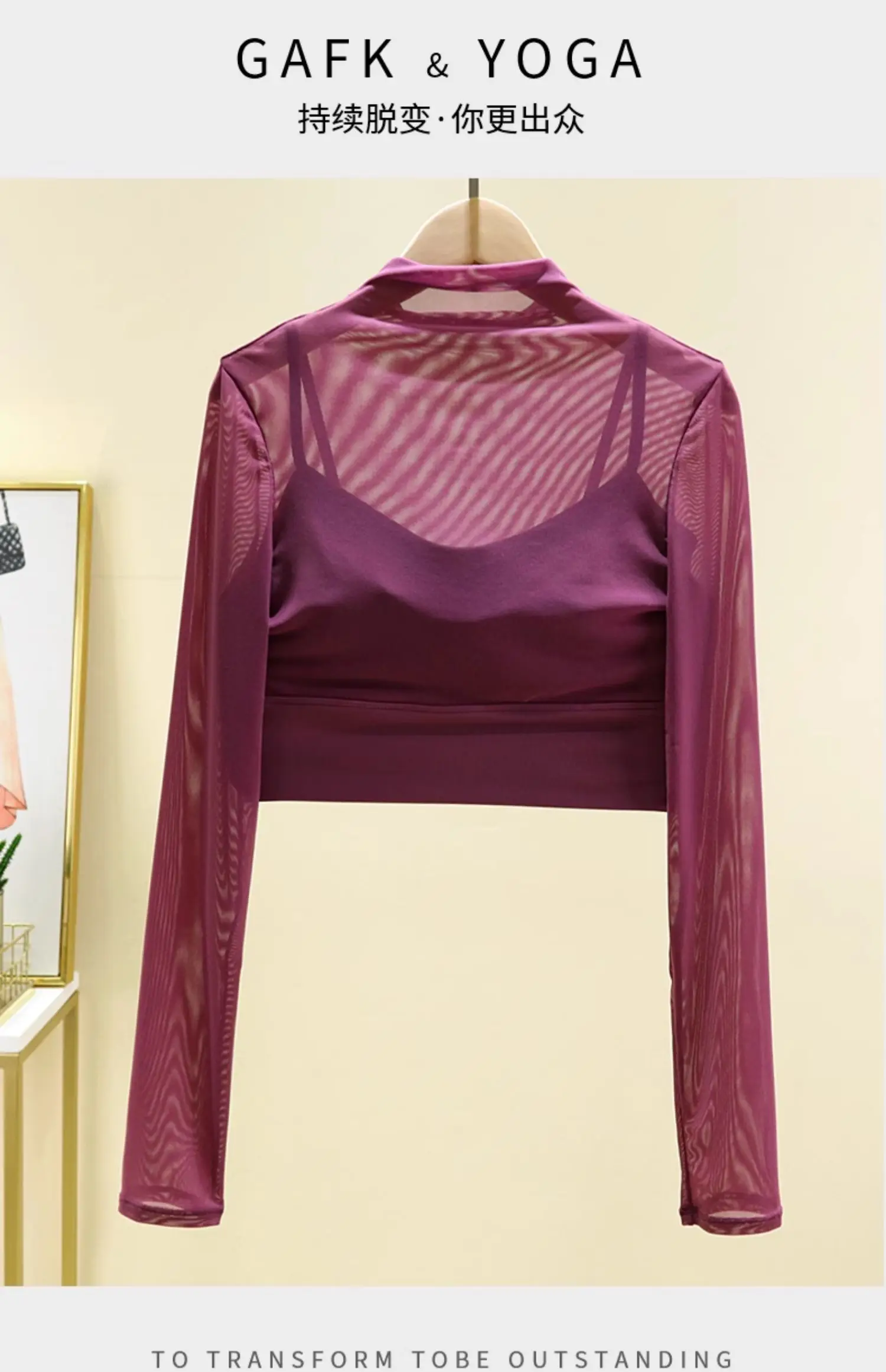 High End Yoga Clothing T-shirt with Chest Cushion and Mesh Sexy and Slimming Yoga Long Sleeved Top Fashion Sports Fitness Top