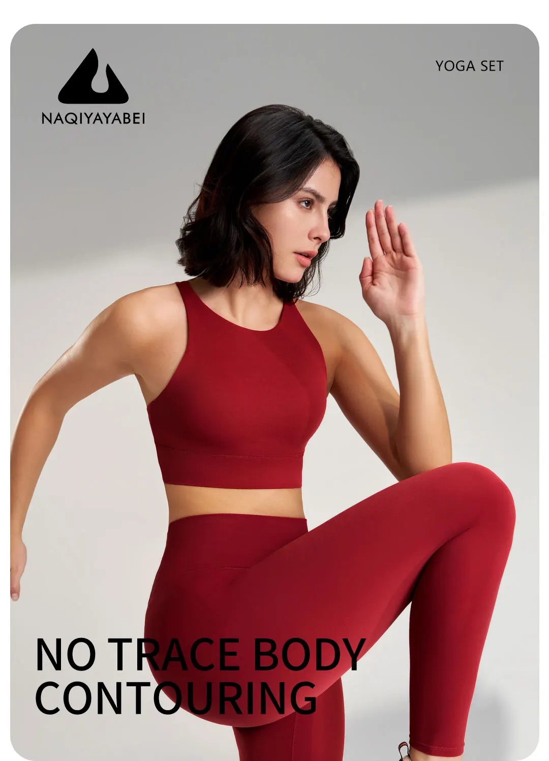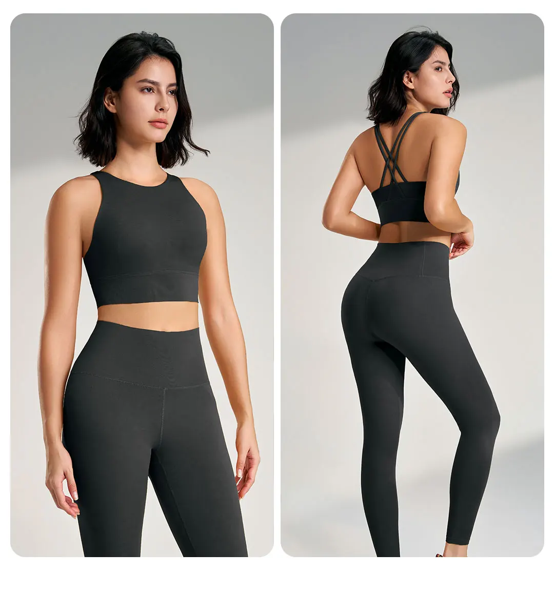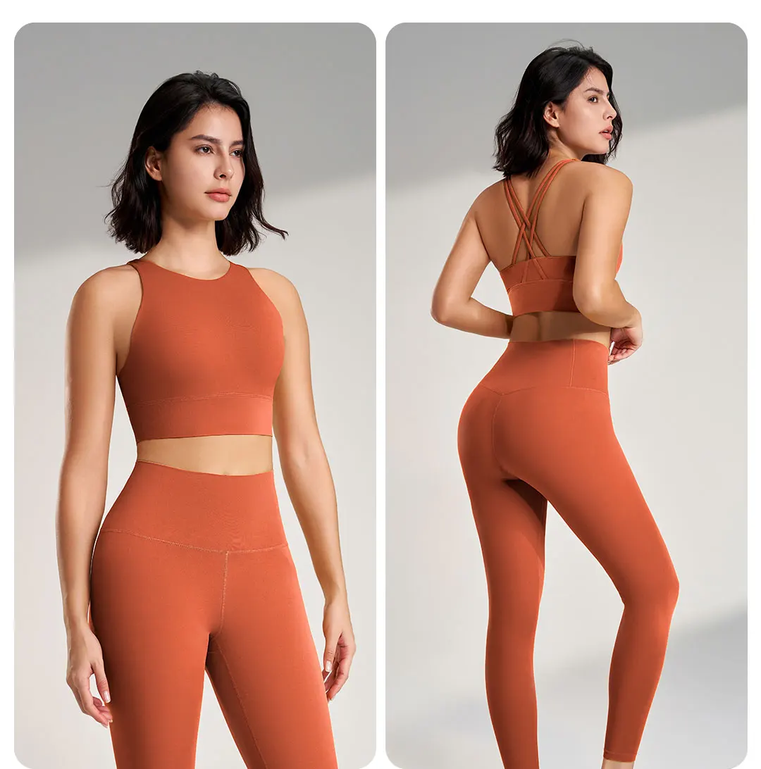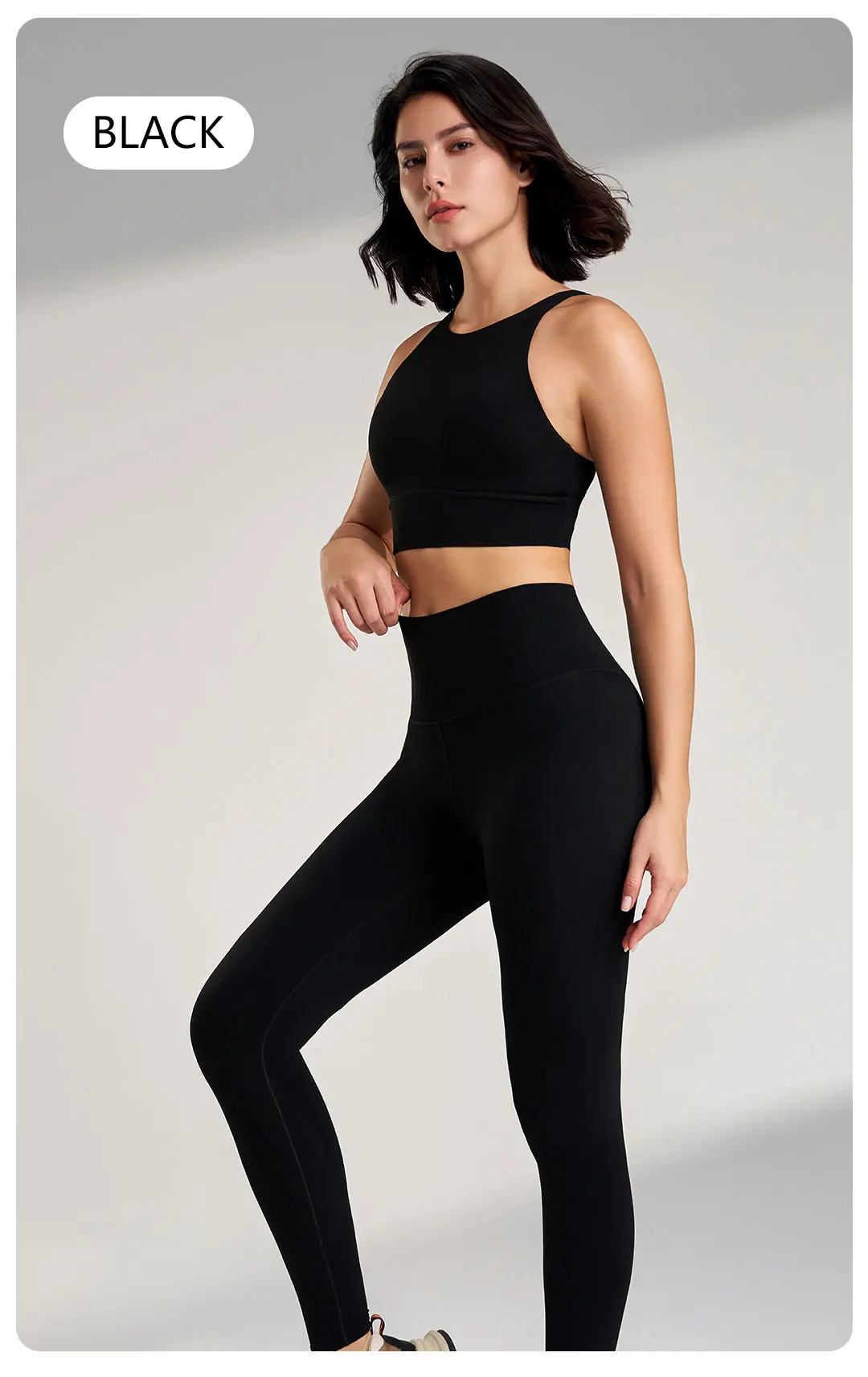 Naked yoga pants set of European and American yoga clothing high-waisted peach to lift the buttocks fitness suit female bra