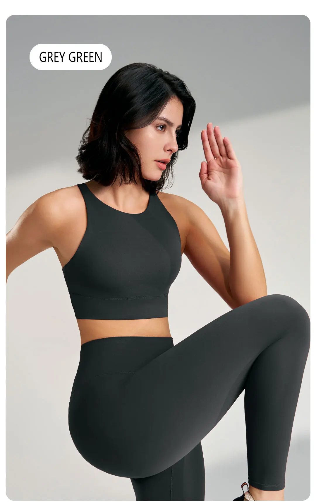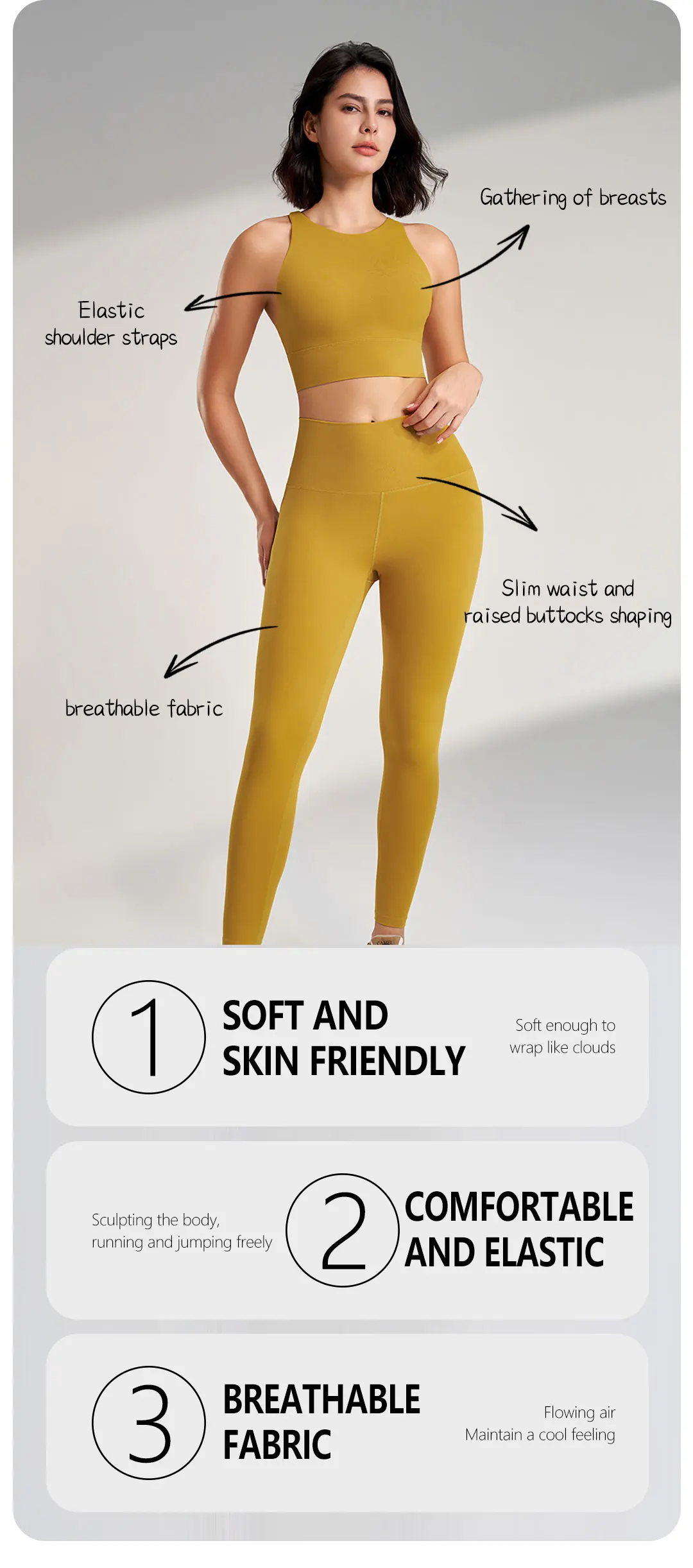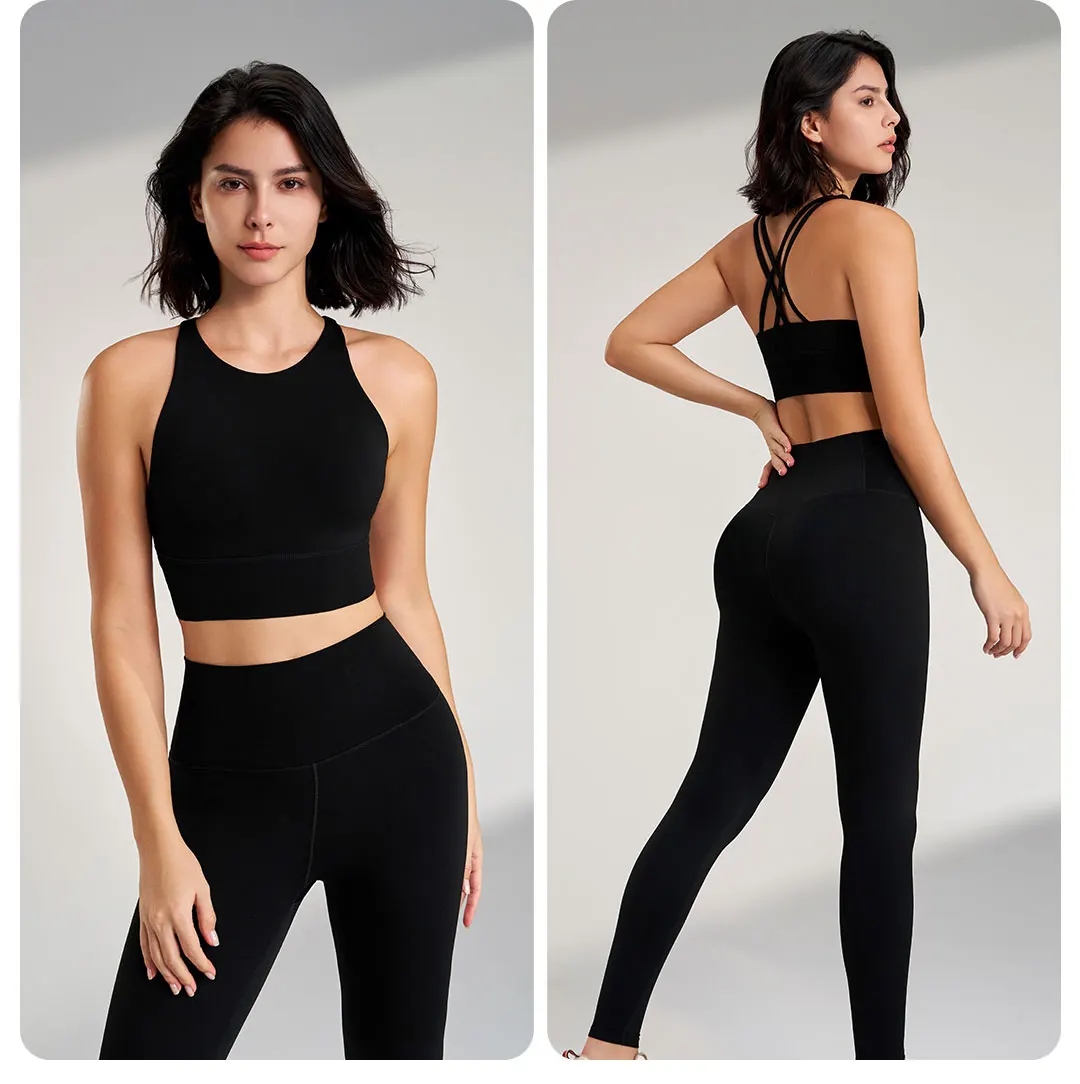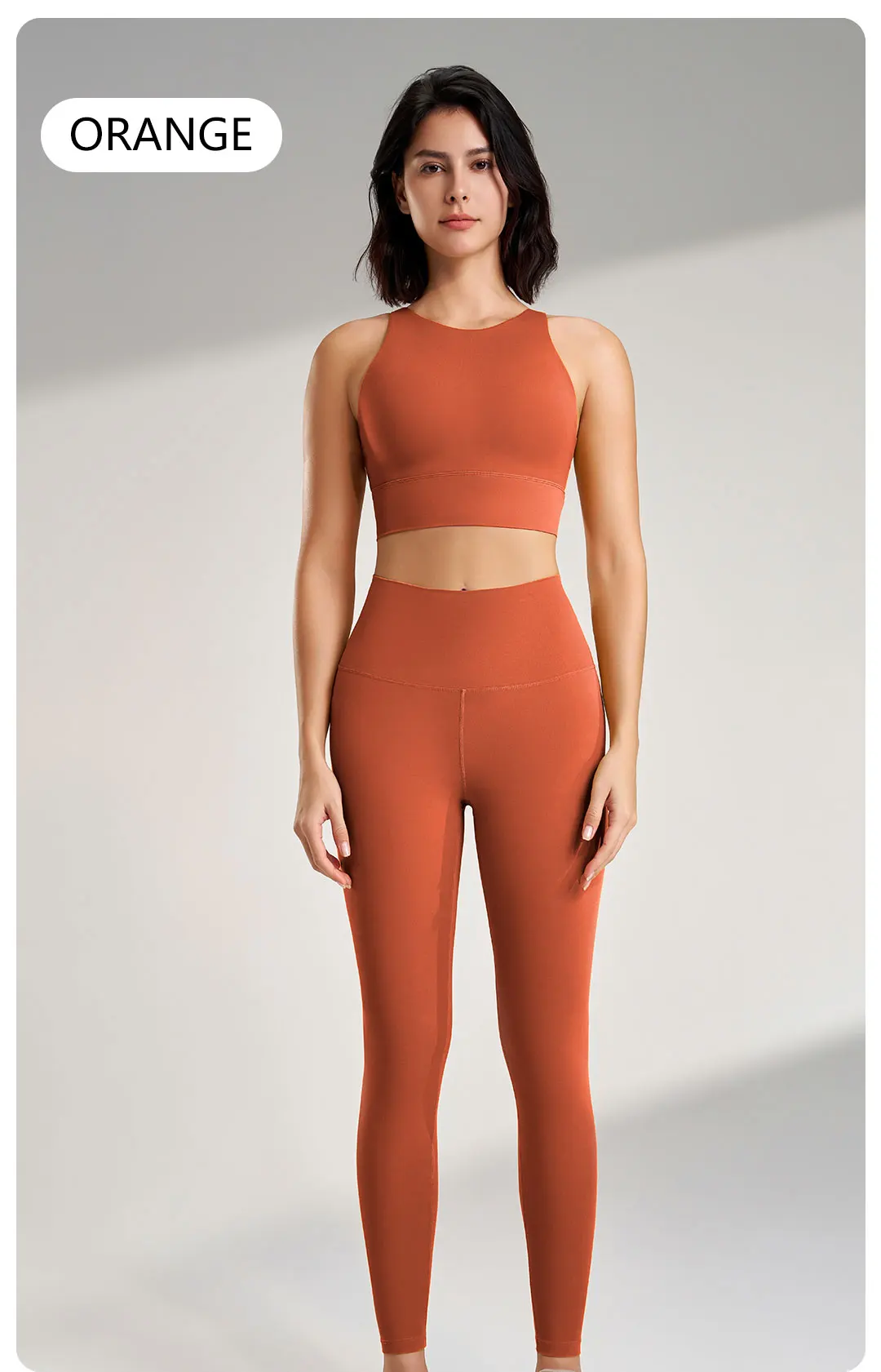 Naked yoga pants set of European and American yoga clothing high-waisted peach to lift the buttocks fitness suit female bra