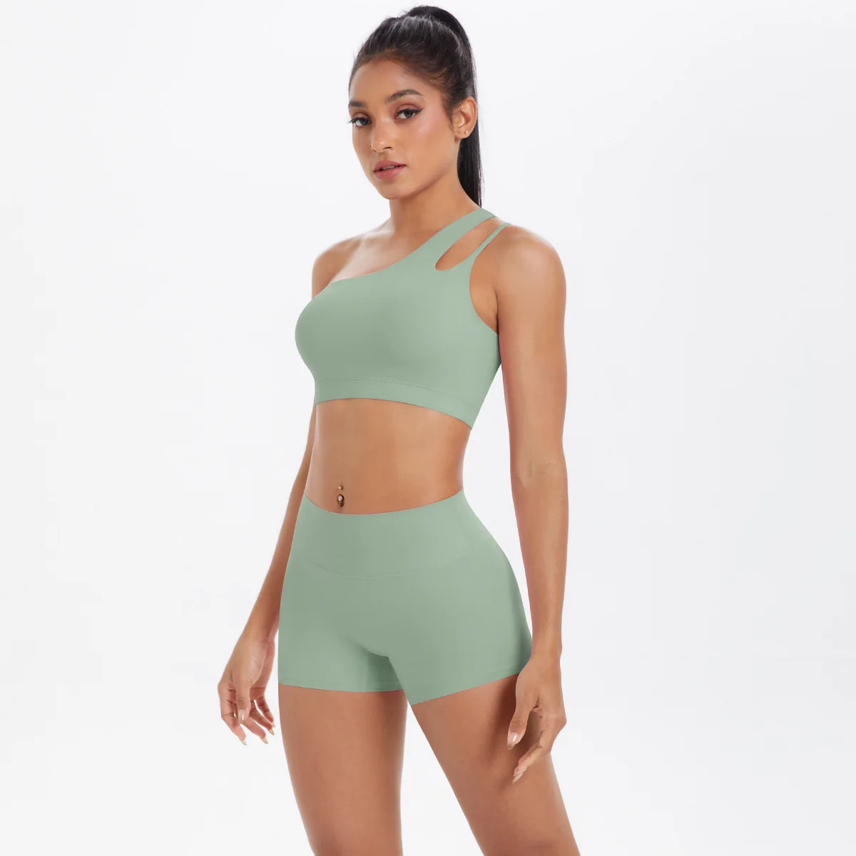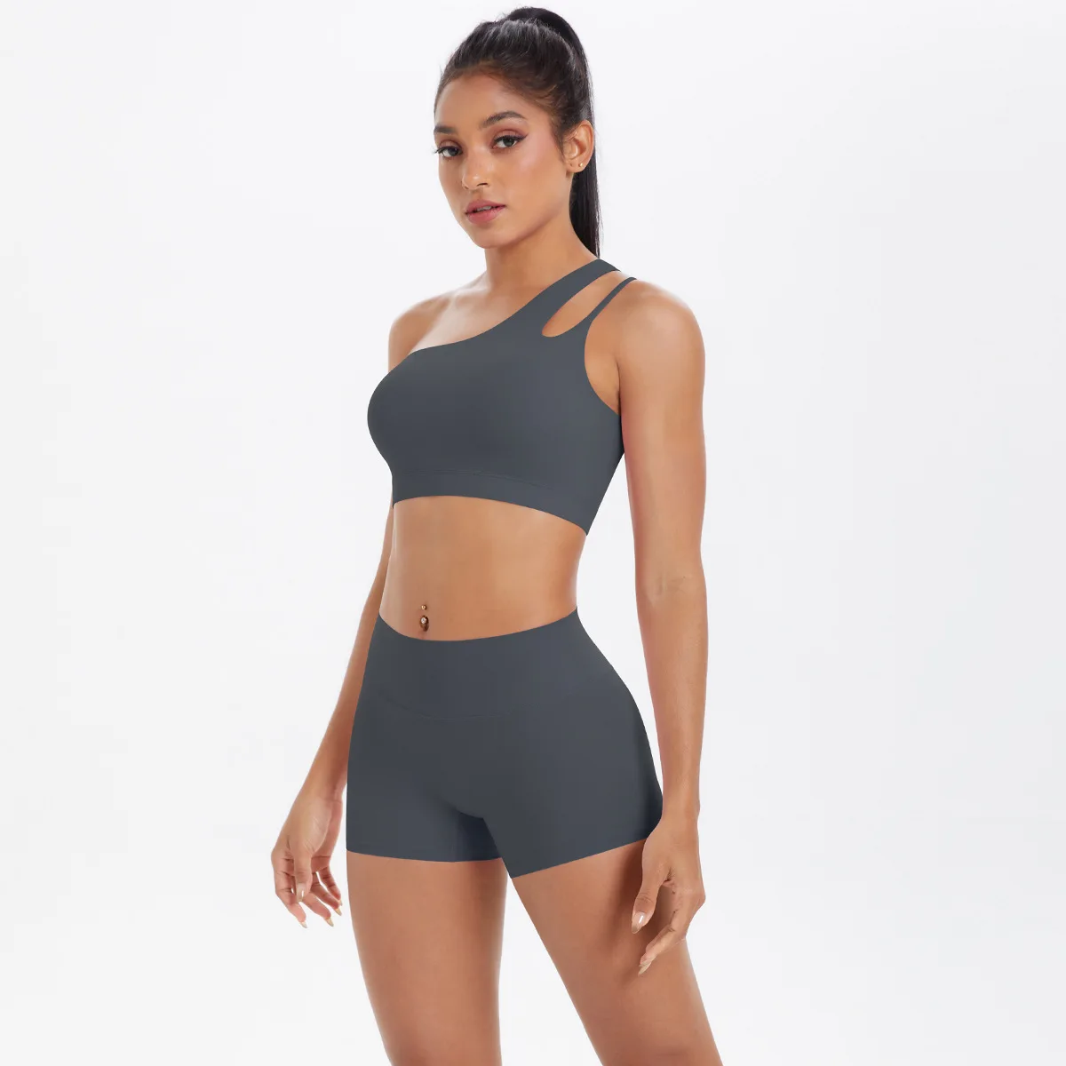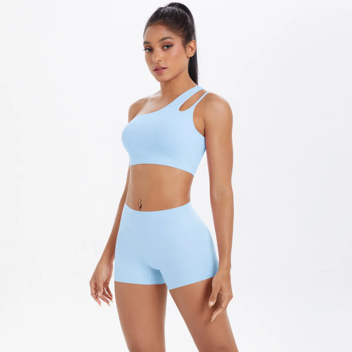 New Sports One-shoulder Back Yoga Clothing Suit Tight To Lift The Buttocks Quick Dry Running Fitness Two-piece Set