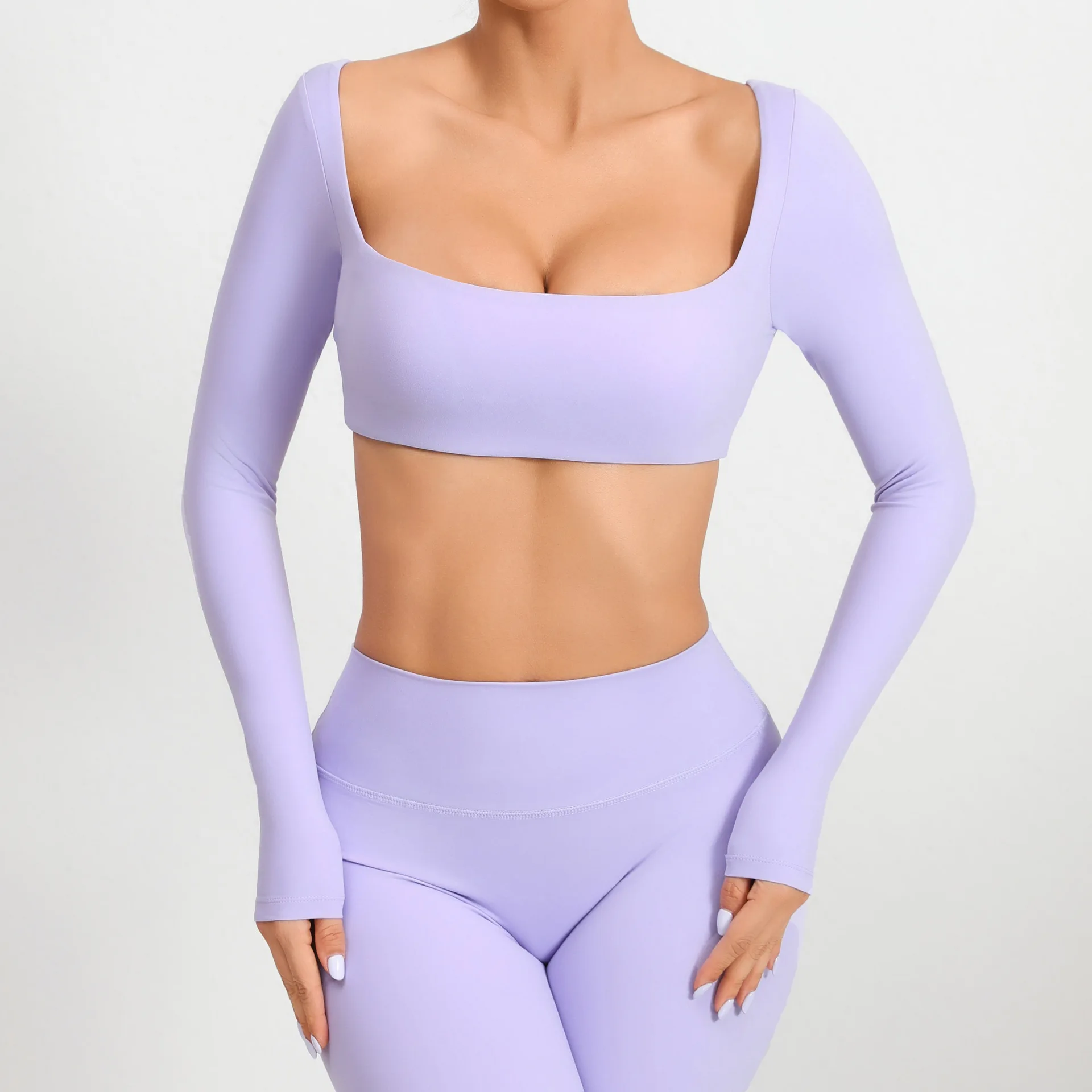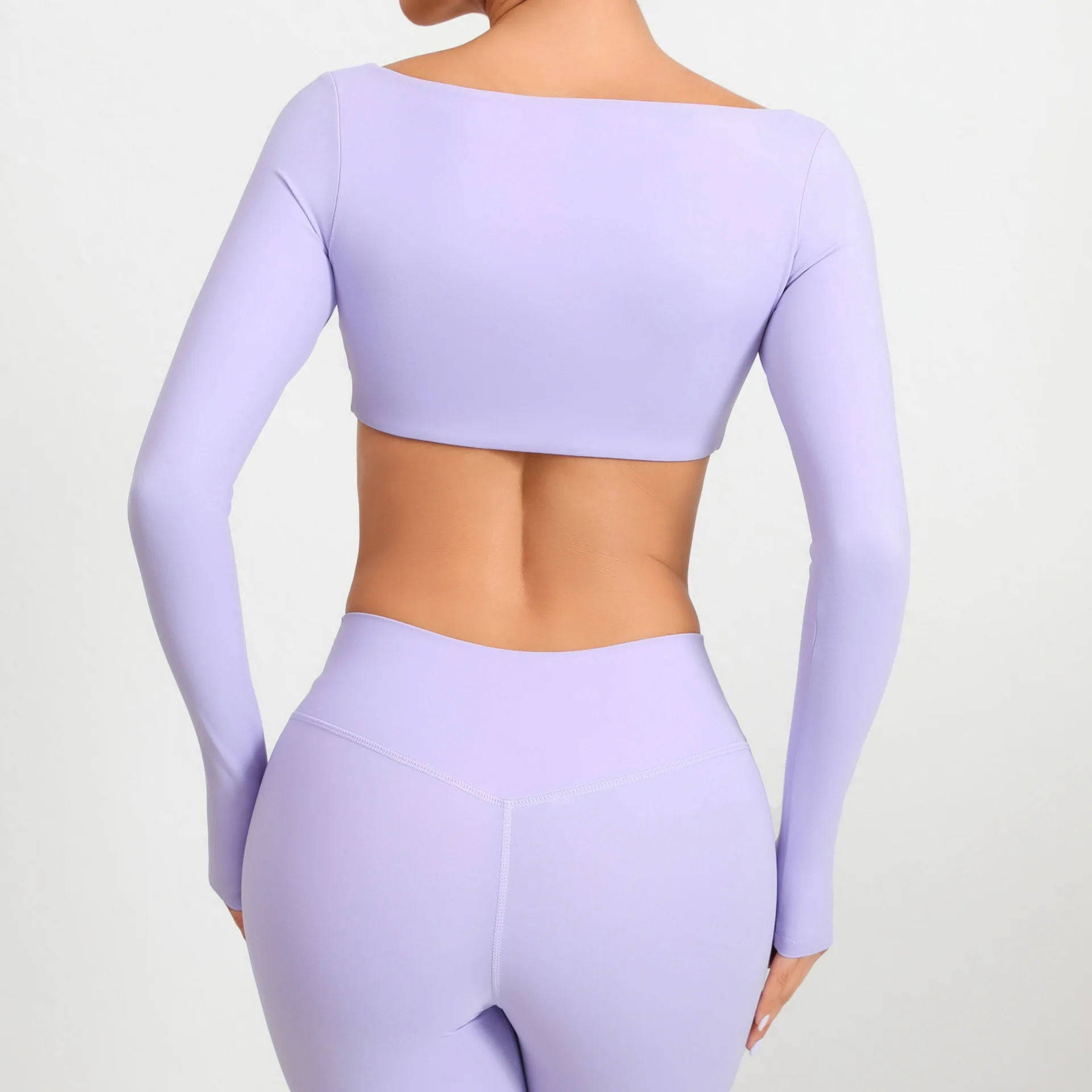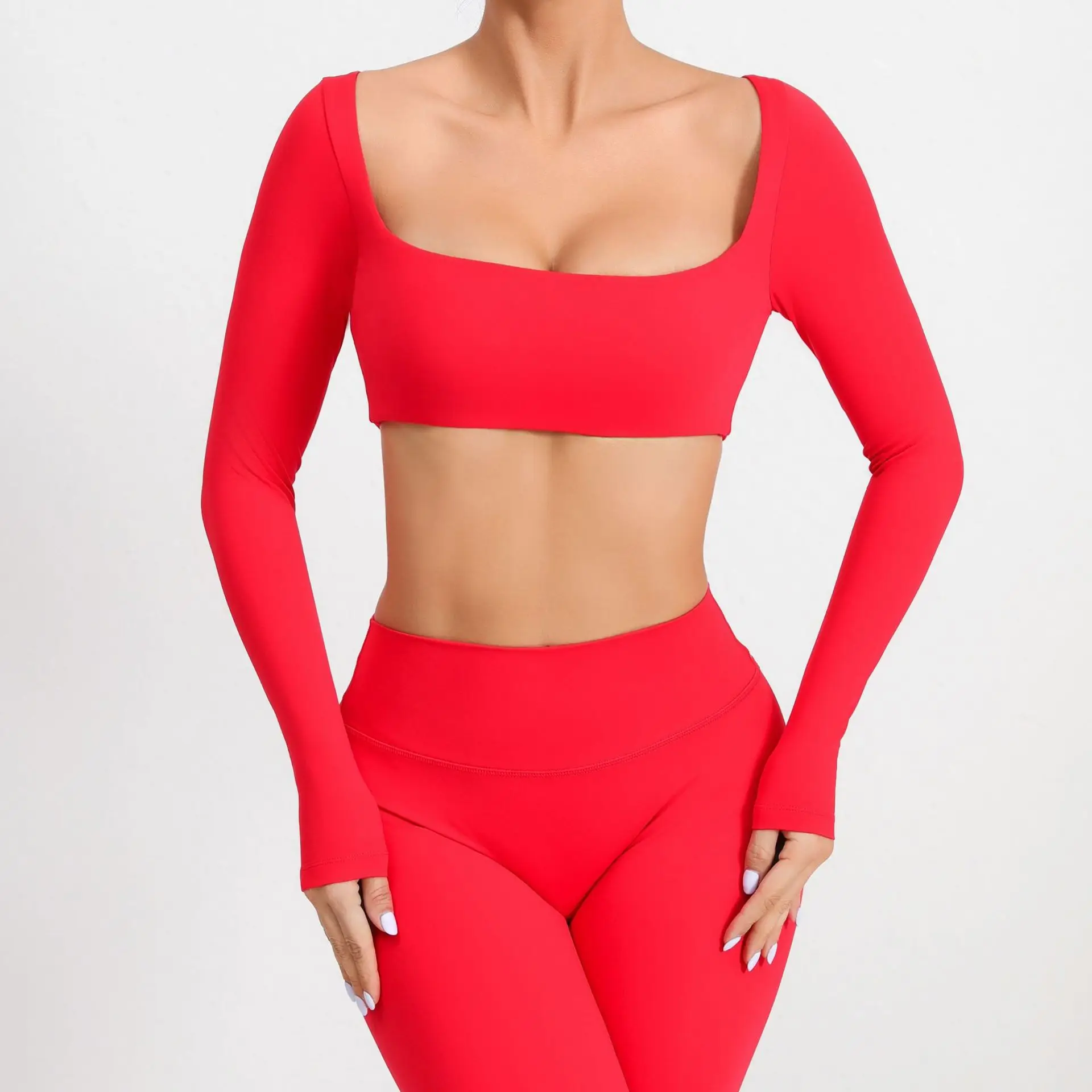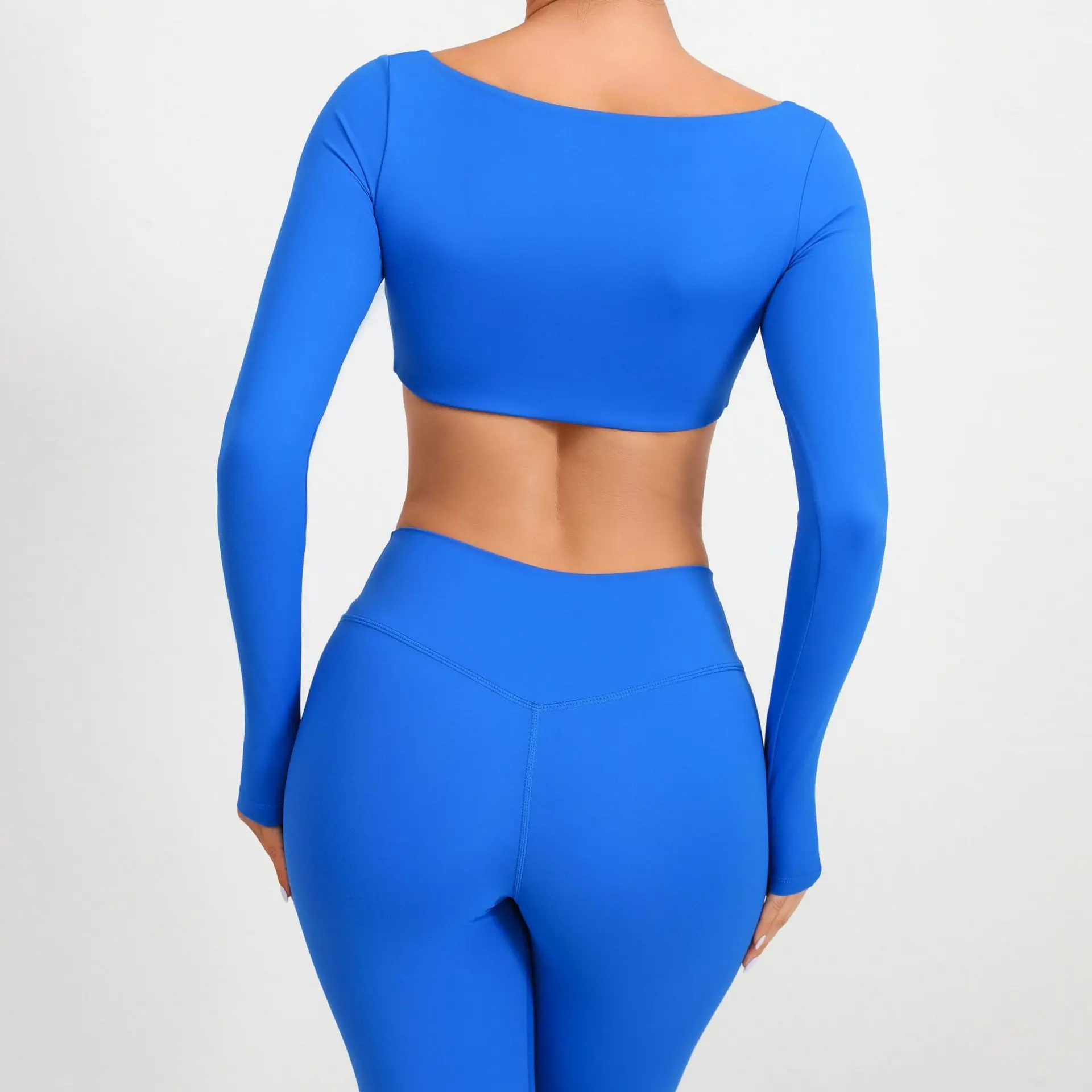 Sexy Naked Feeling Long Sleeve Yoga Clothing Stretch Female Outdoor Running Quick Dry Sportswear Women Training Tight Yoga Suit