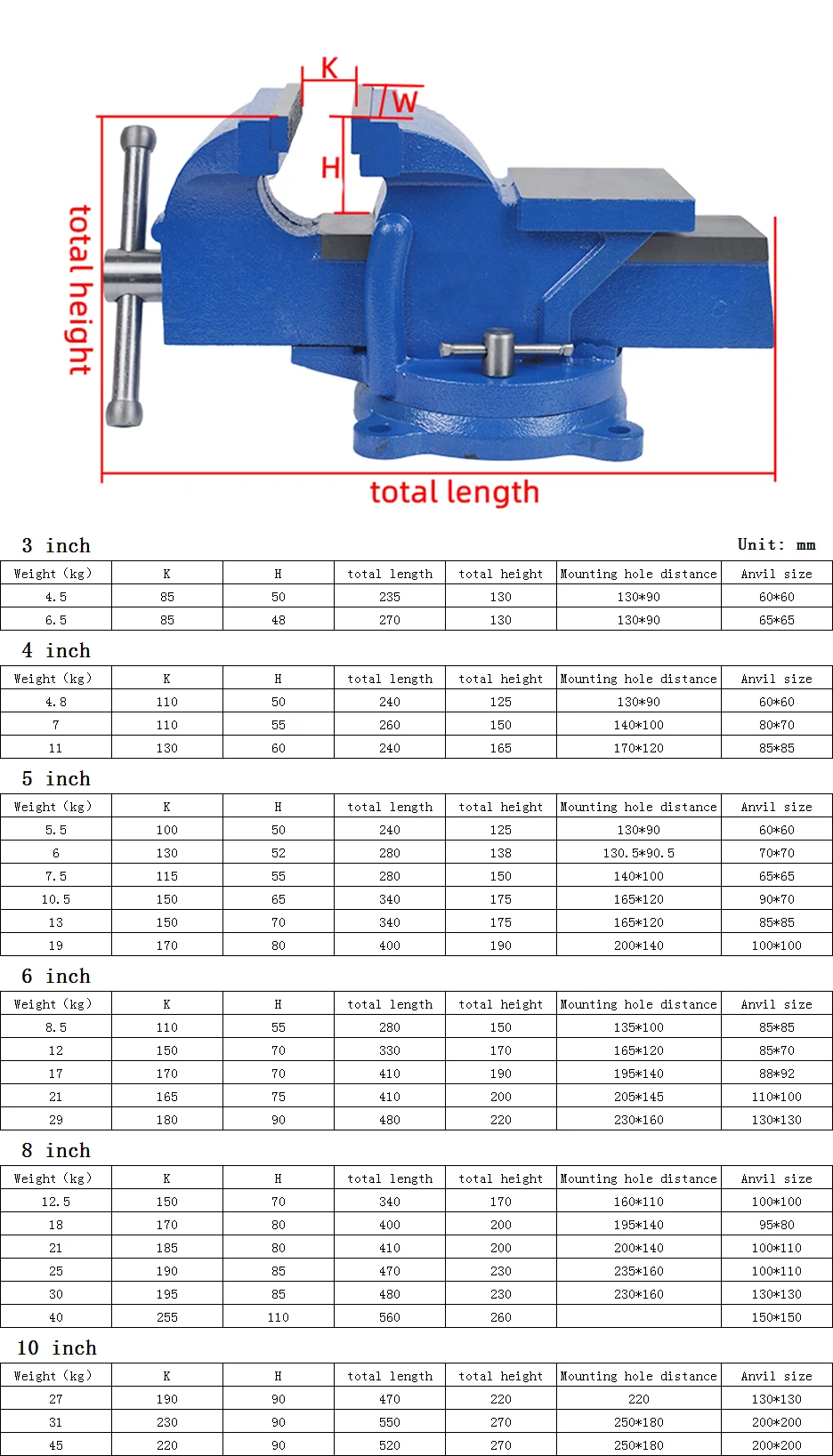 SPECIFICATIONSBrand Name: NoEnName_NullDrive Mode: ManualHign-concerned Chemical: NoneMaterial: Cast ironOrigin: Mainland ChinaType: Bench Vise 1PCS vise 8 inch 12kg Vise (please click picture to buy what you need) 3 inch 4.5kg 3 inch 6kg 4 inch 4.8kg 4 inch 6.5kg 4 inch 11kg 5 inch 5.5kg 5 inch 6kg 5 inch...