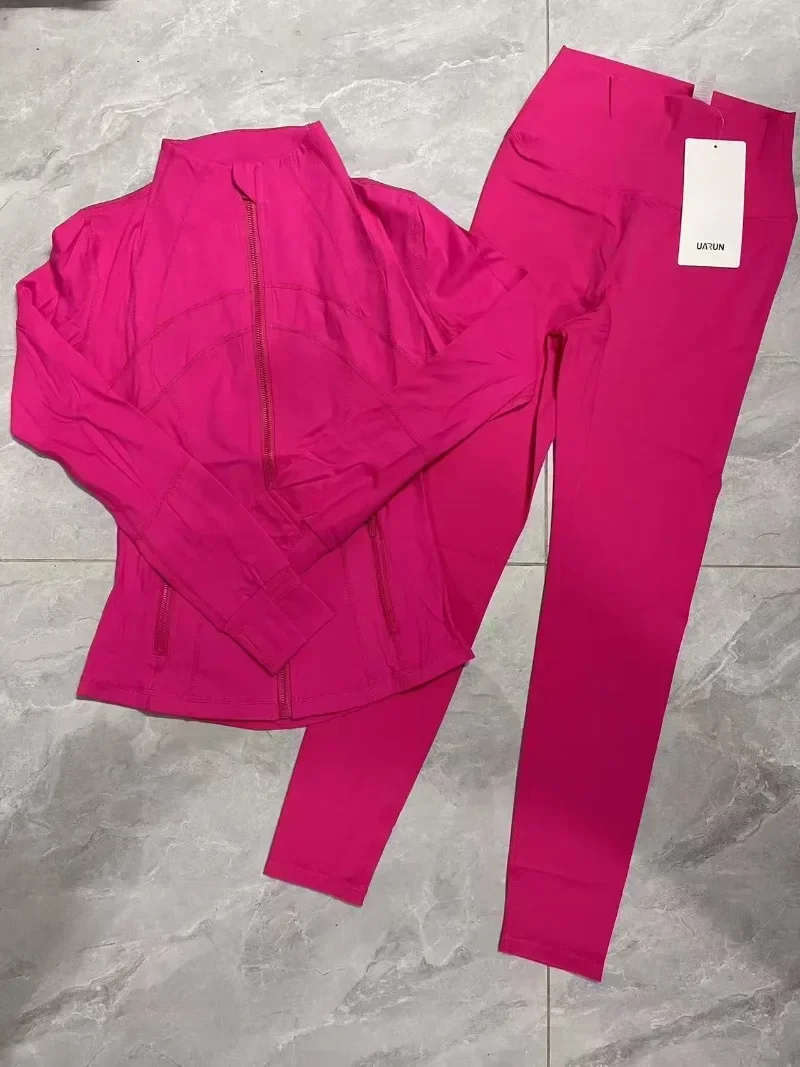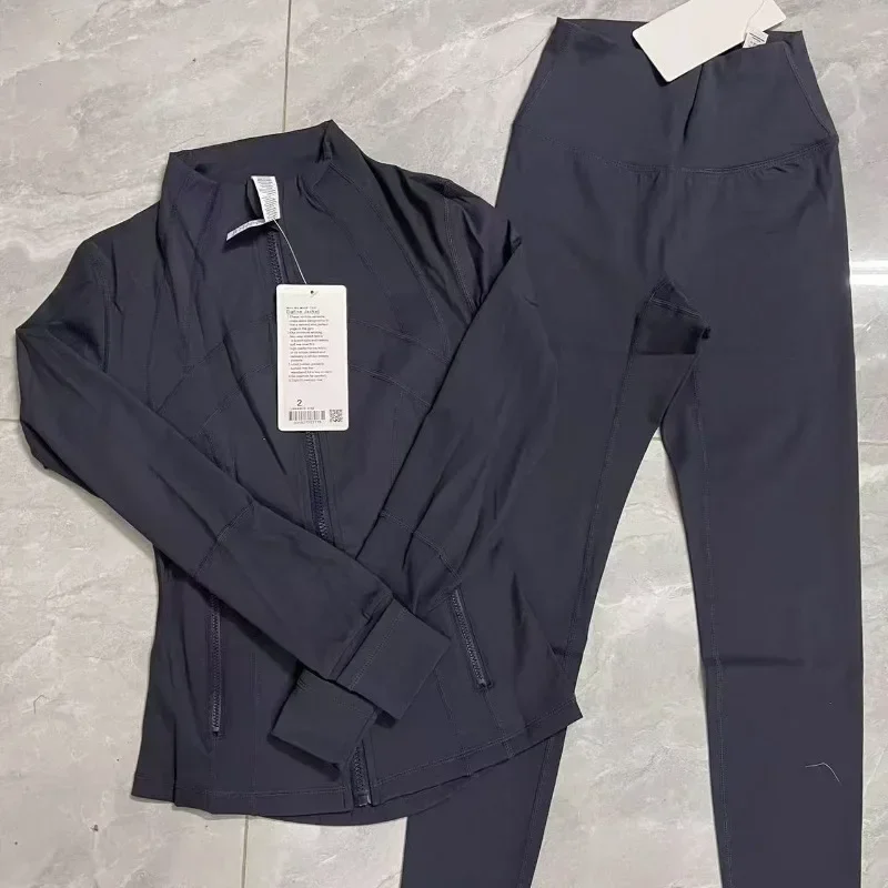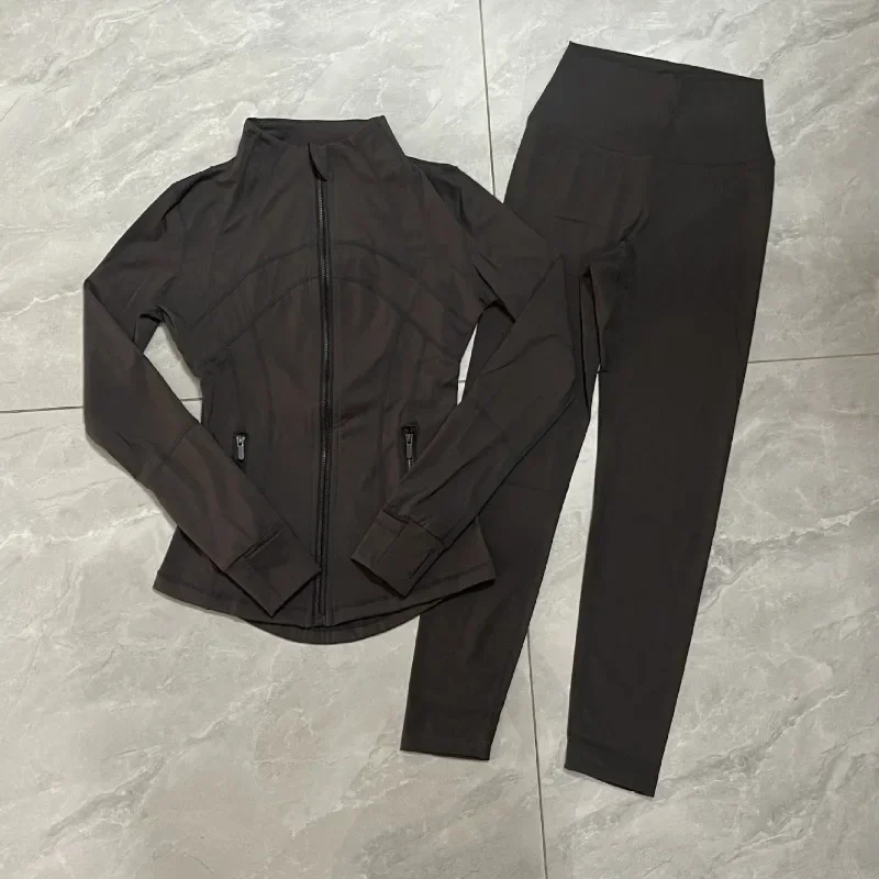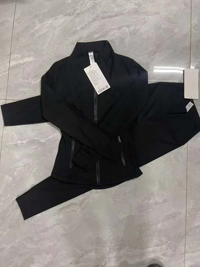 Yoga Suit Set Stand Collar Long Sleeve Jacket Plus Nine-point Pants Yoga Elastic Breathable Running Fitness Suit for Women