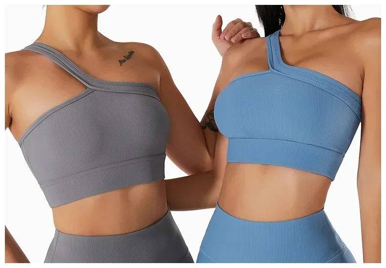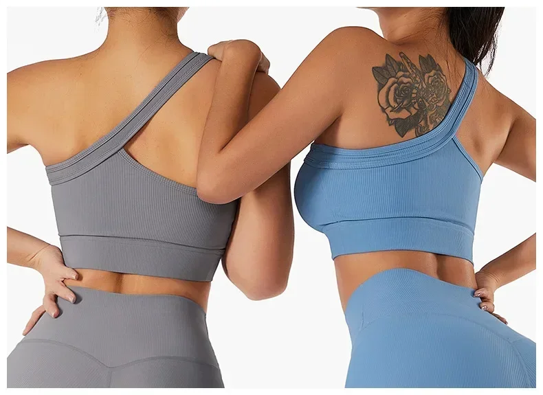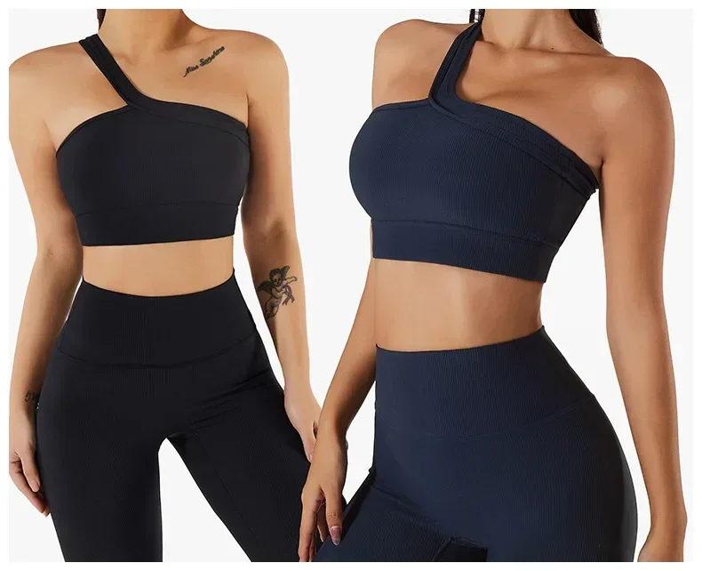 Yoga vest one-shoulder bra with bra pads shockproof gathered fitness training outer wear underwear female suspenders